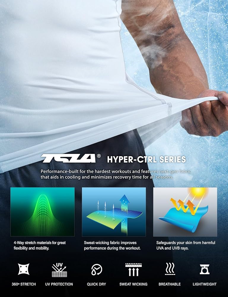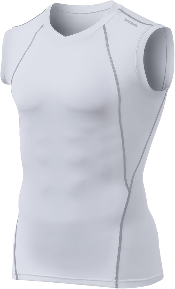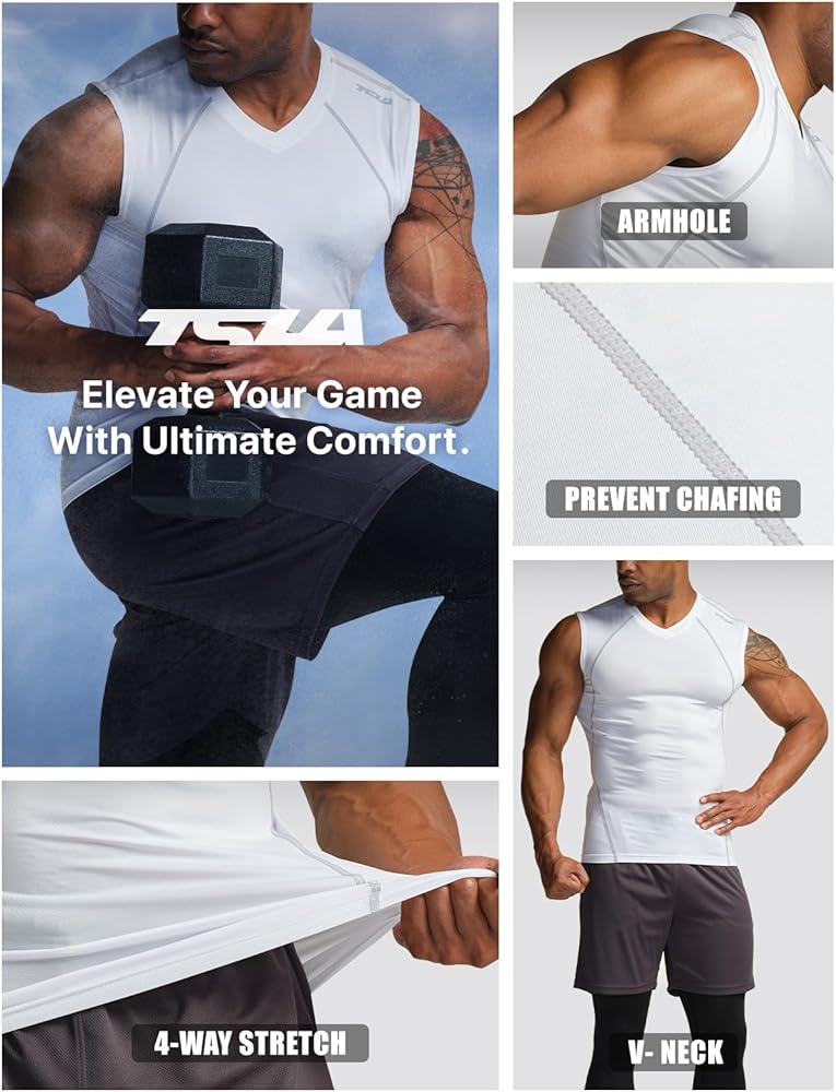 قمصان رياضية بدون أكمام برقبة على شكل حرف V للرجال من TSLA، قمصان قصيرة مضغوطة للجري، قميص بدون أكمام للتدريب الرياضي