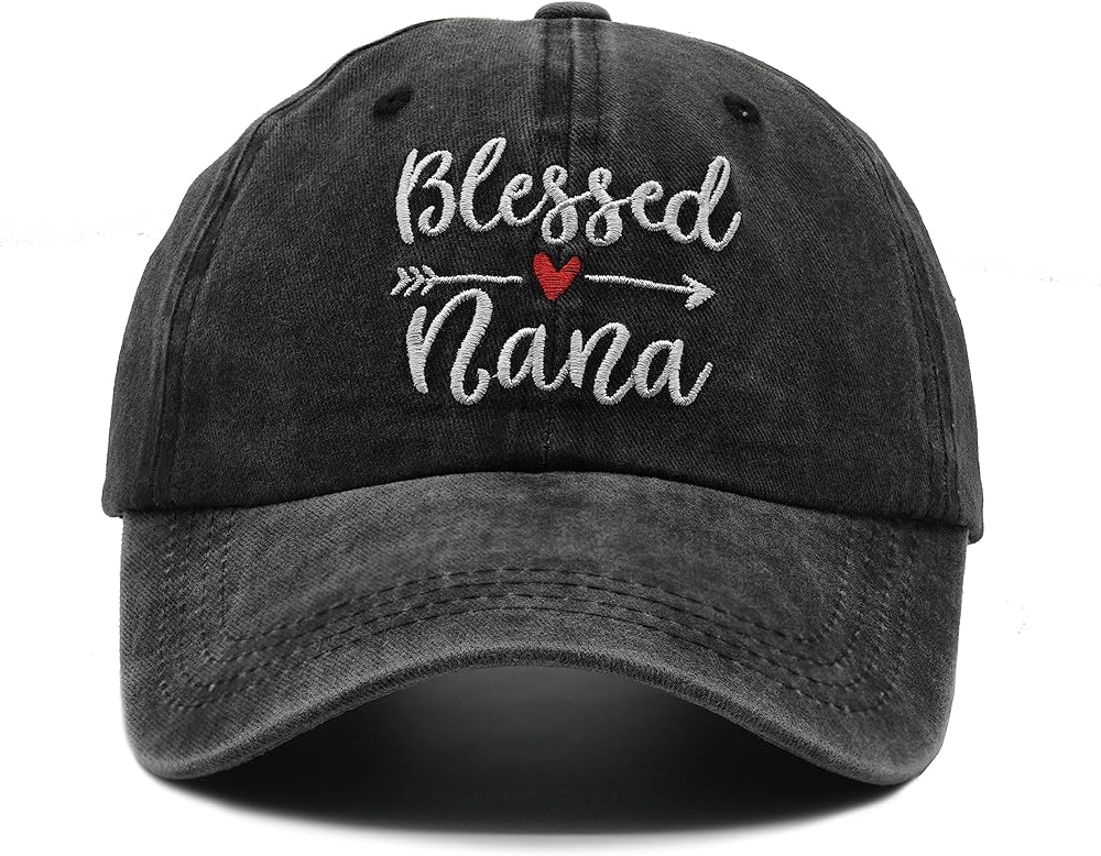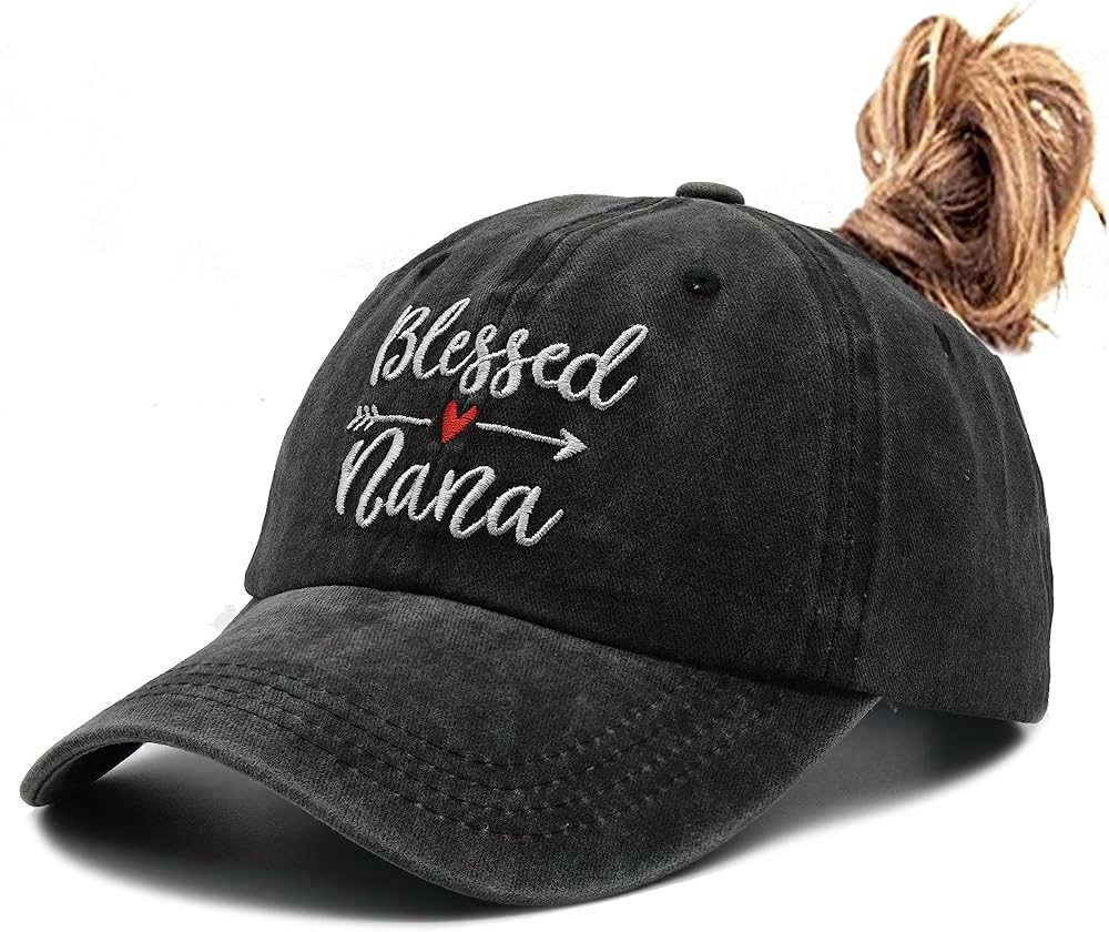 قبعة بيسبول للسيدات من Waldeal Blessed Nana مطرزة على شكل ذيل حصان قابلة للتعديل، باللون الأسود