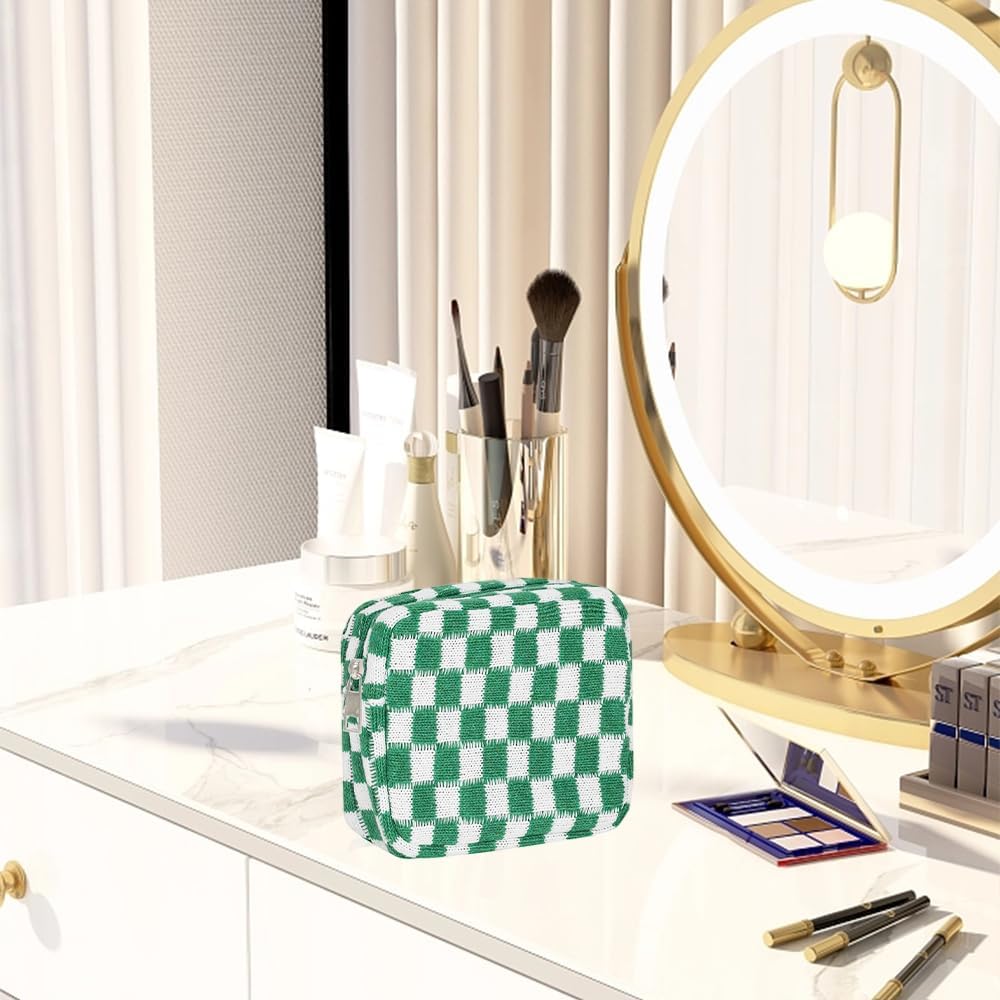 【تصميم مفتوح】 حقيبة المكياج الصغيرة الخاصة بنا سهلة تخزين الأشياء الصغيرة وفرشاة المكياج وما إلى ذلك، لجعل مكياجك اليومي وأدوات النظافة والحواجب وكحل العيون والكريم وأحمر الشفاه والعطور وغيرها من أدوات التجميل منظمة ومحمية.