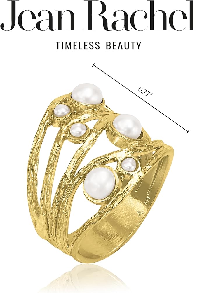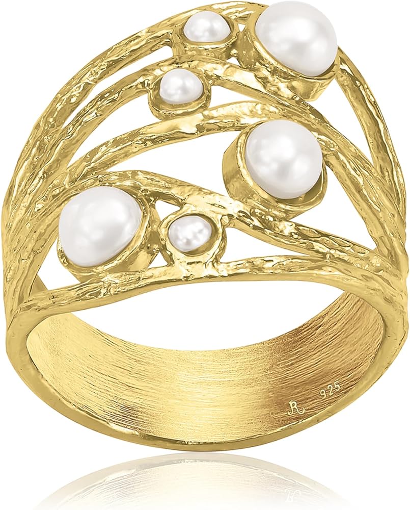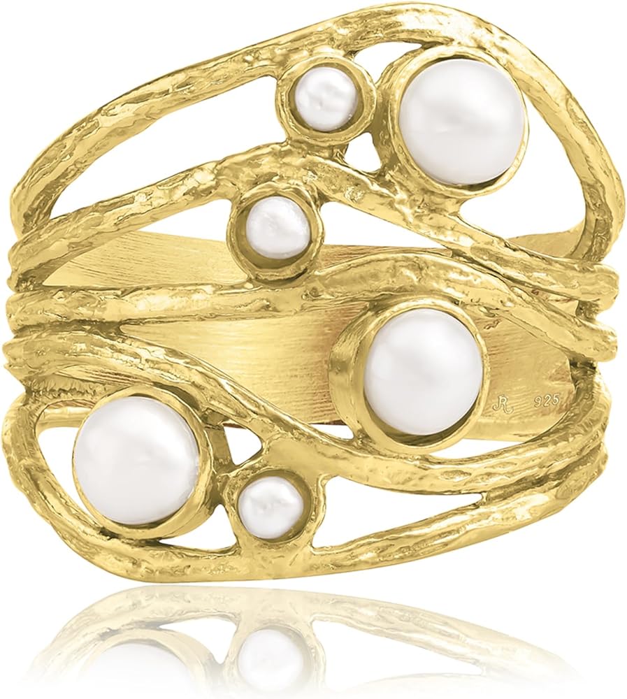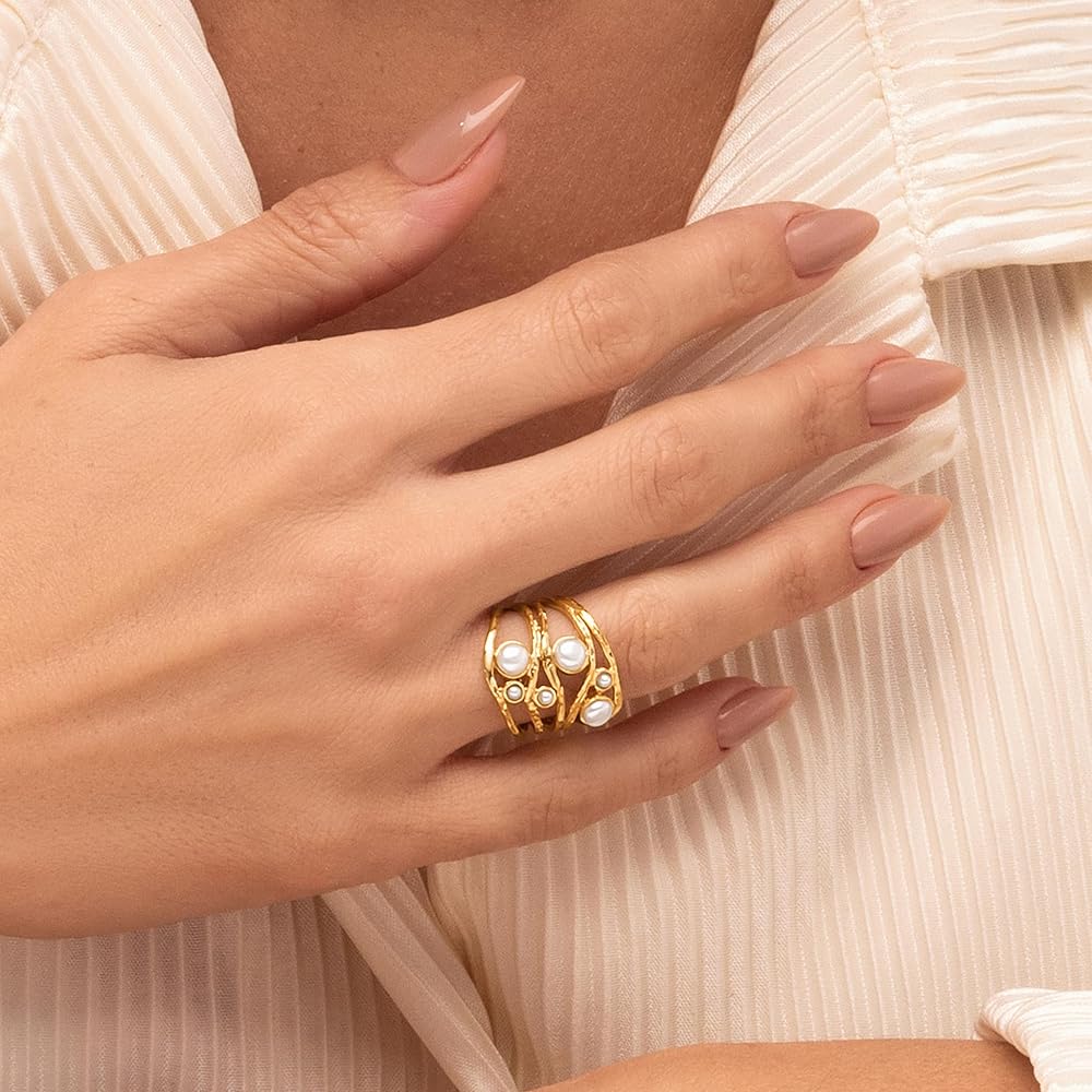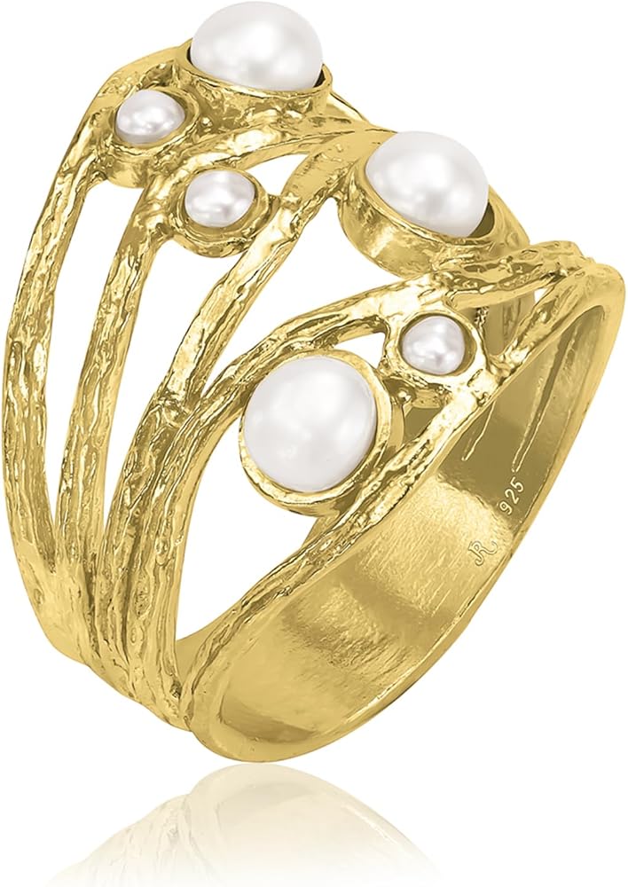 خواتم من الذهب عيار 14 قيراط فوق الفضة الاسترليني مع 2 مم و4 مم من سلك لؤلؤ المياه العذبة ملفوف متعدد الخيوط، خواتم ذهبية أنيقة، هدايا للنساء، مجوهرات جمالية، خواتم للنساء، مجوهرات للنساء