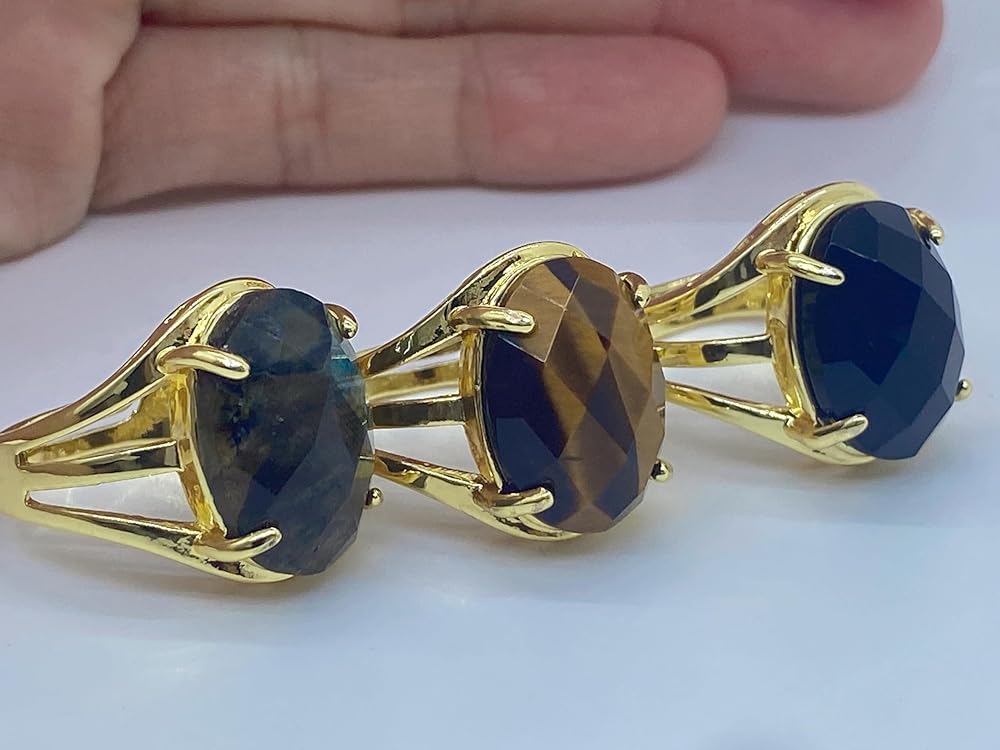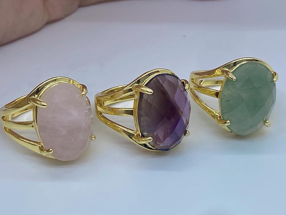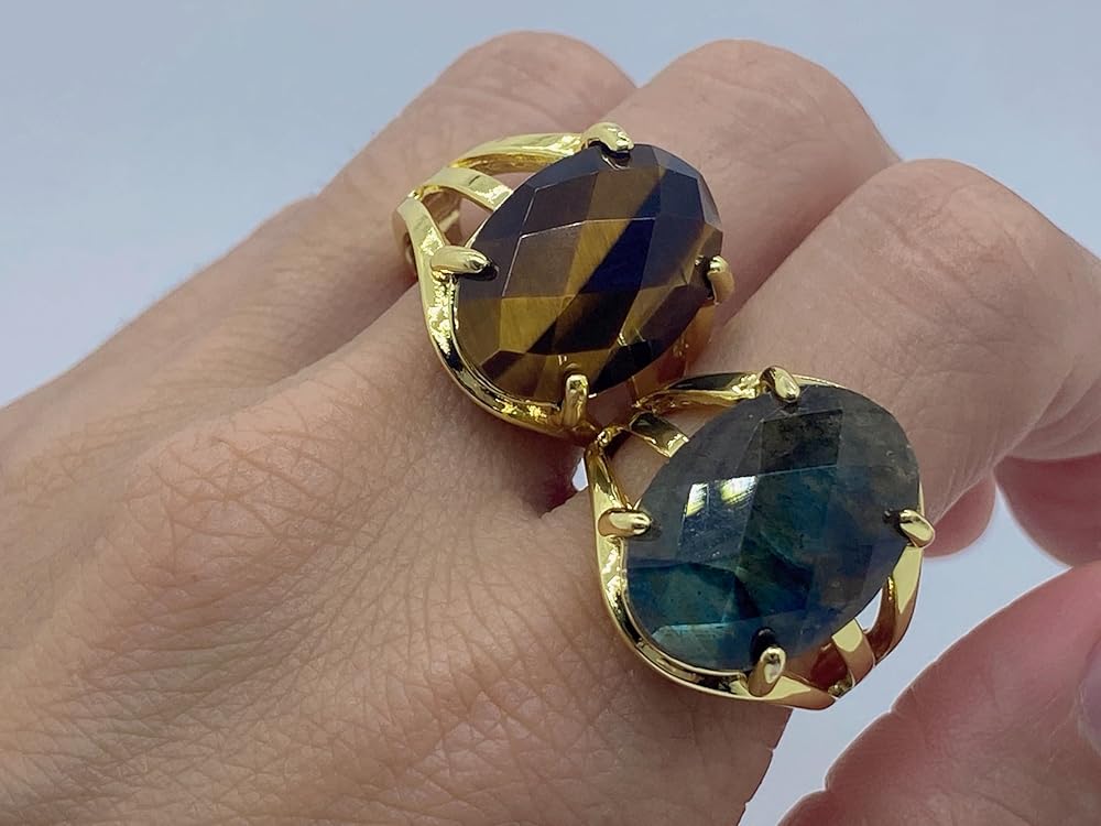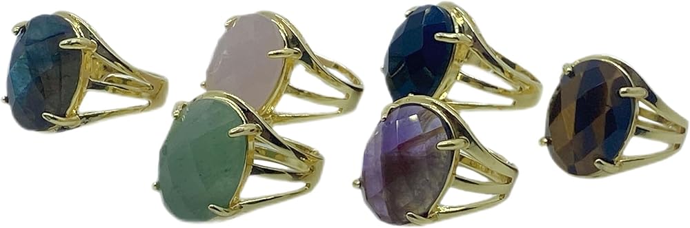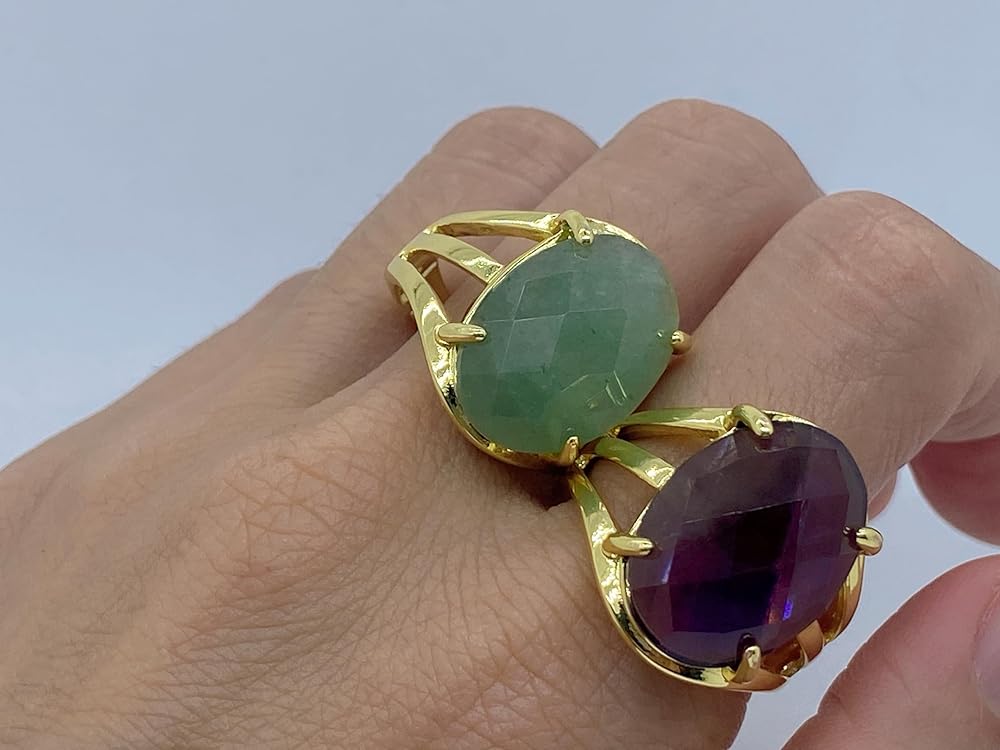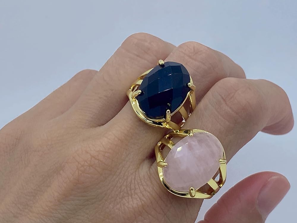 Material: Faceted Oval/Round Shaped Natural Stone and Rhodium Plated Base Metal. Size: Open and Adjustable. Oval Shaped Stone measure 0.51x0.71inch(13x18mm); Round Shaped Stone Diameter: 0.63inch(16mm). Gender: Unisex. Occasion: Daily use, Birthday, Engagement, Wedding, Party, Dating, Anniversary and Holiday. Elegant, Charming and Stylish. Perfect for mom, sister, daughter, granddaughter, grandmother, wife, girlfriend, millennial, teen, best friend, bride, etc. Best Choice for Birthday Gift, Anniversary Gift, Valentine's Day Gift, Thanksgiving Day Gift or any special moments. Comes with a pouch with drawstring. Color Tone show on pictures may slightly different from the actual item because each fine ring is made of unique natural stones. Natural stones vary in colors.