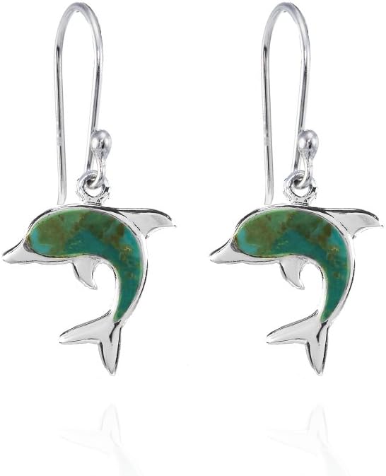 Sterling Silver Abalone or Simulated Turquoise Dolphin Animal Dangle Earrings