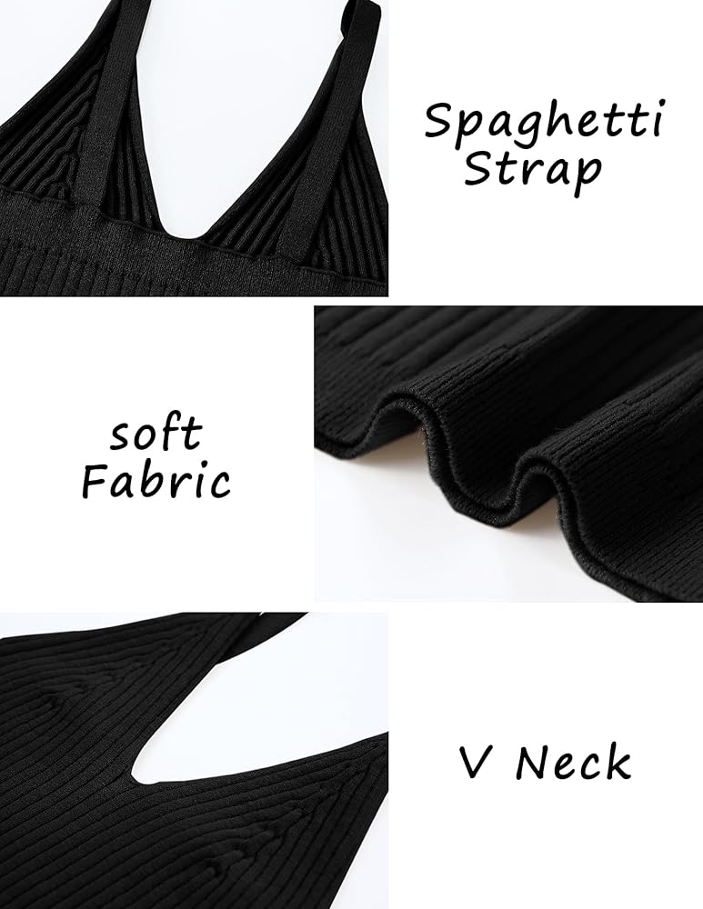 السمات: رقبة على شكل حرف V، بدون أكمام، نسيج مضلع، طول قصير، حزام سباجيتي، قصة منخفضة، بدون ظهر، قمصان كامي أساسية كاجوال، قمصان علوية لطيفة للخروج