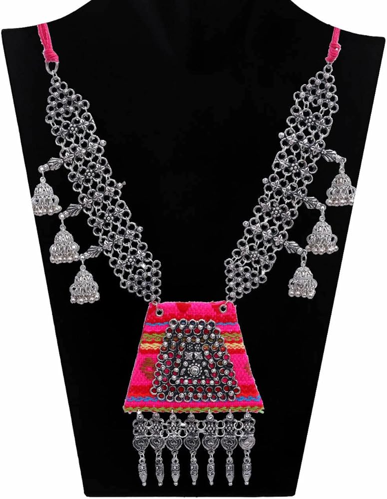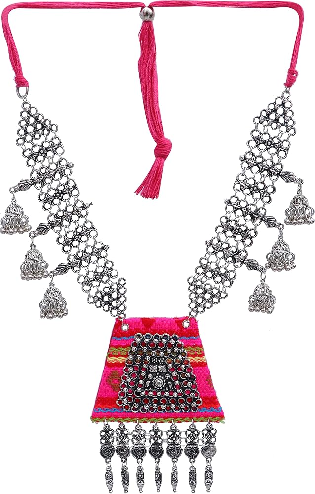 الهندي الأفغاني اليدوية النسيج الفضة المؤكسد شرابة بوهو مطرز المطرزة البوهيمي موضوع المختنق قلادة مجوهرات الوردي