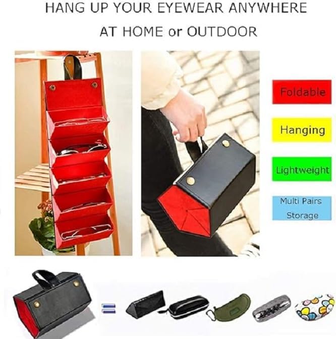 Experience the convenience and functionality of our Hanging Foldable Sunglasses Organizer Case. Perfect for travel or home use, it keeps your sunglasses organized and easily accessible, while also offering a compact and portable design. A must-have accessory for sunglasses enthusiasts of all ages.