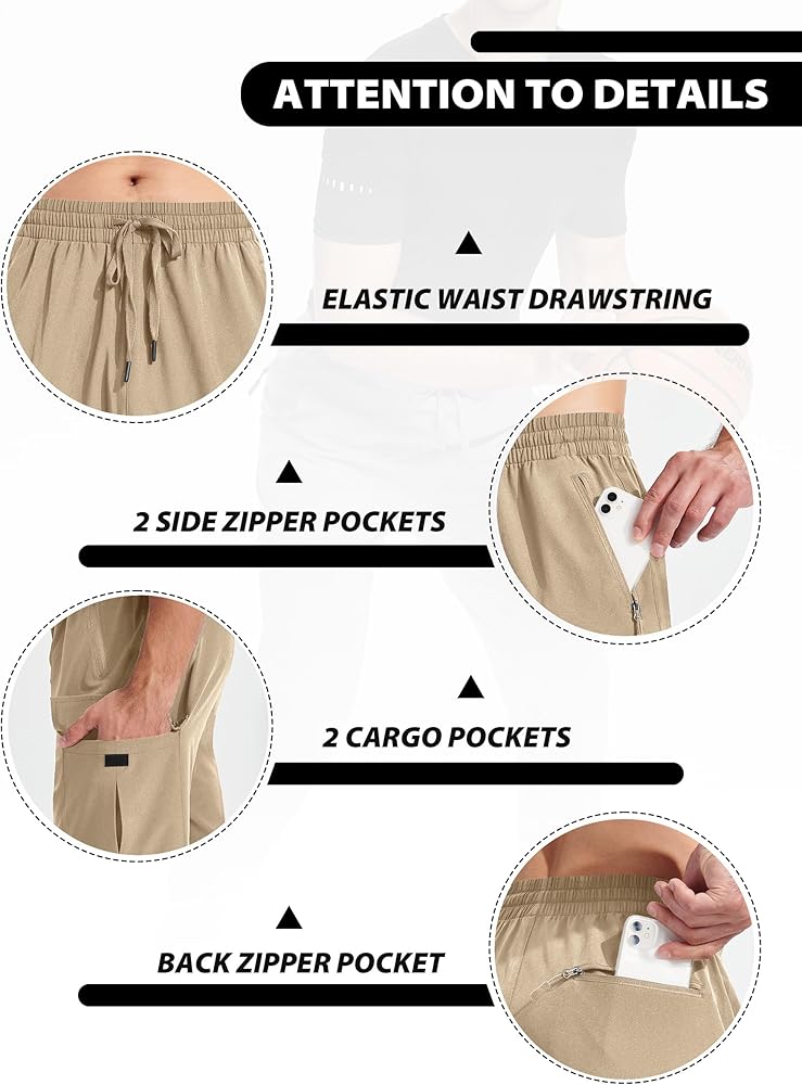 سراويل سريعة الجفاف للرجال مصنوعة من قماش مقاوم للماء وسريع الجفاف وخفيف الوزن يبقيك جافًا ومحميًا من المطر الخفيف والبقع.