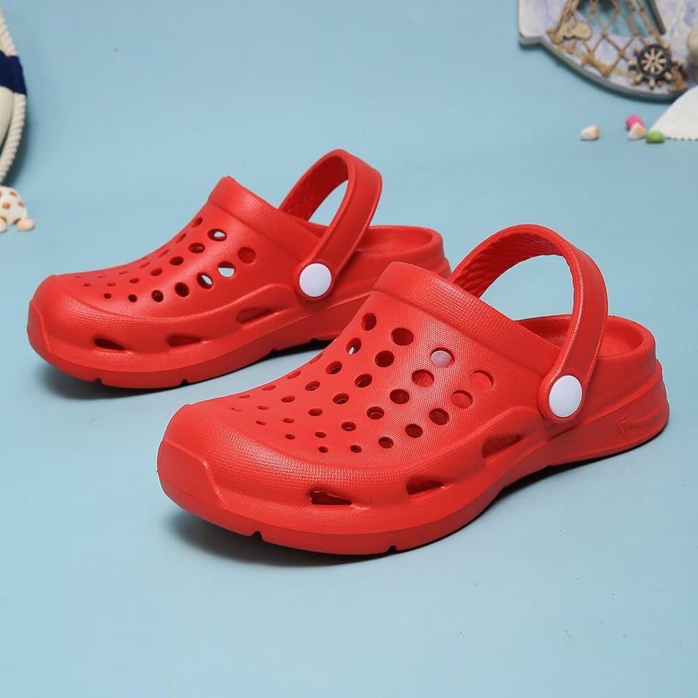 أحذية مائية للأطفال الصغار من الأولاد والبنات، أحذية مائية سهلة الارتداء، صنادل للأطفال للاستخدام الداخلي والخارجي باللون الأحمر للأطفال الصغار من سن 10 إلى 11 عامًا