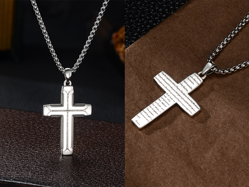 【قلادة متقاطعة من الفضة الإسترلينية من الكتاب المقدس】: صليب الصلاة الرب هذا مستوحى من تصميم المظهر المتقاطع الأنيق جنبًا إلى جنب مع نقش الصلاة الربانية. أعتقد أنه يمكن أن يجلب لك قوة الإيمان. القلادة منقوشة بخطوط عمودية بسيطة ورائعة. لا يمكن استخدام هذه القلادة كرمز للإيمان فحسب، بل أيضًا كعنصر عصري لتزيين ملابس الشخص.