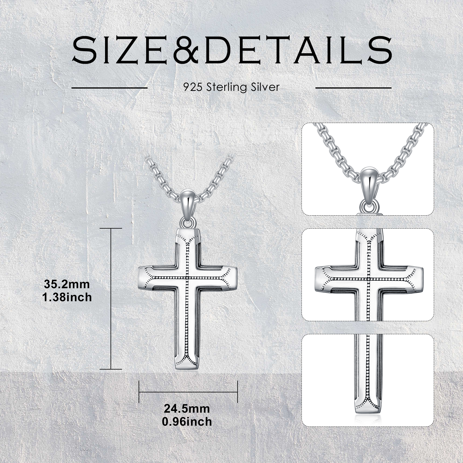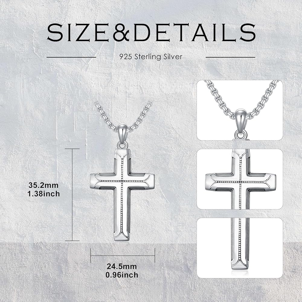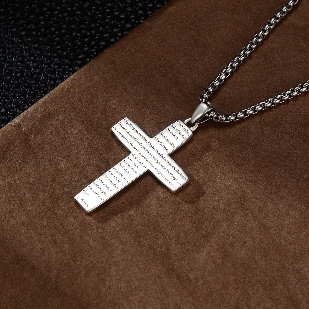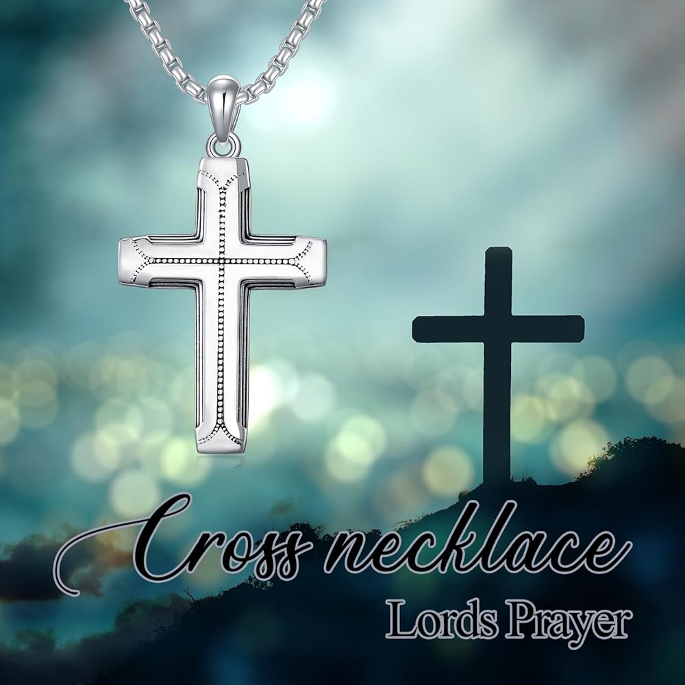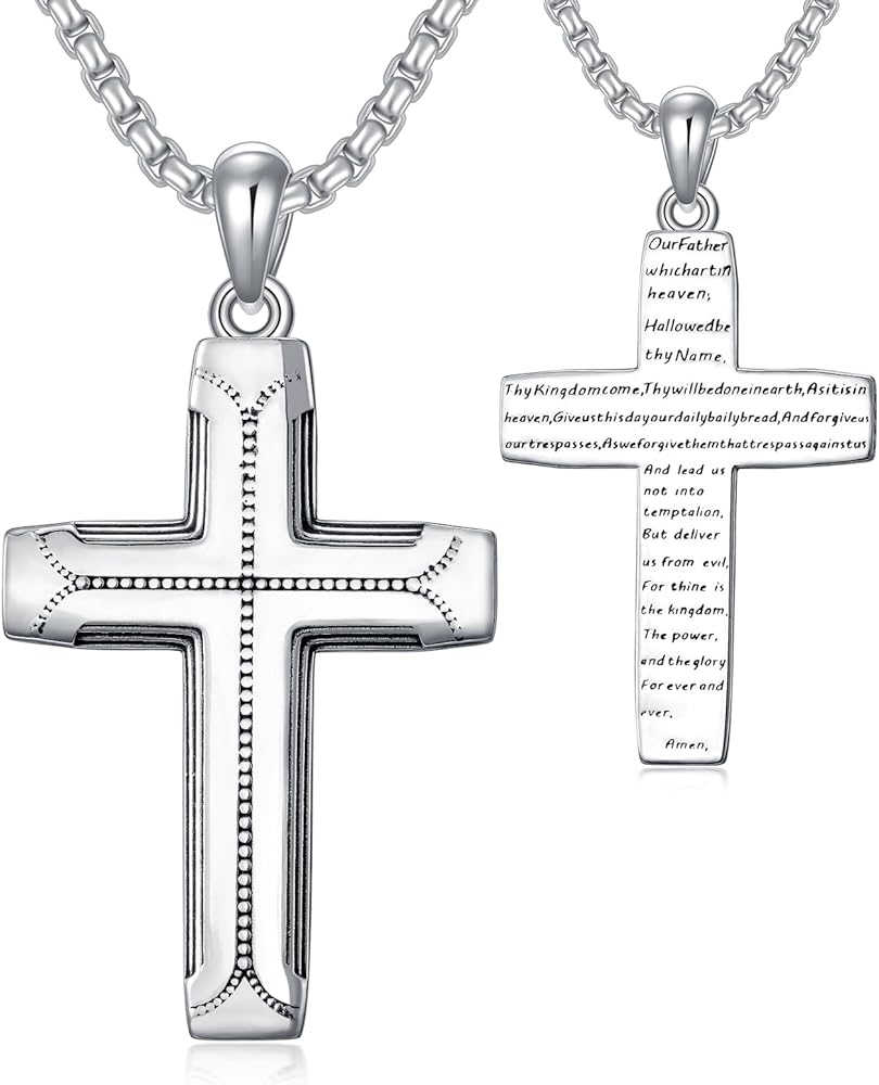 925 الفضة الاسترليني الصليب قلادة للرجال النساء الرب الصلاة النقش الصليب قلادة مع سلسلة 2 مم عيد الميلاد الكاثوليكية المسيحية هدايا المجوهرات للأب الزوج الابن صديقها في سن المراهقة