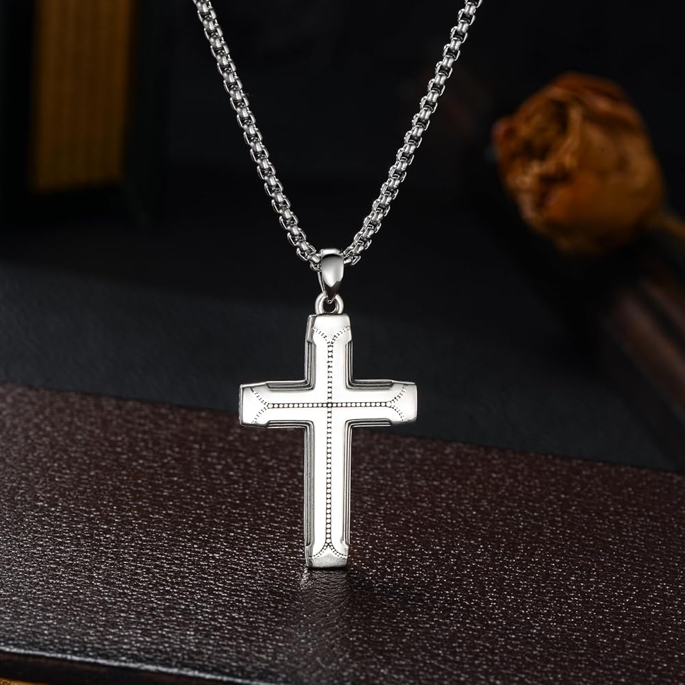 【الخامة: قلادة صليب الصلاة لورد مصنوعة من الفضة الإسترلينية عيار 925، مؤكسدة لخلق نسيج عتيق، خالية من الرصاص والنيكل، لا تسبب الحساسية، مع سلسلة صندوقية مستديرة من الفولاذ المقاوم للصدأ، آمنة وقوية.