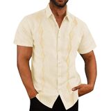 Features: This guayabera shirts fearturing geometric embroidery style, short sleeve, button down closure, turn-down collar, classic regular fit, help you look gentlement and handsome