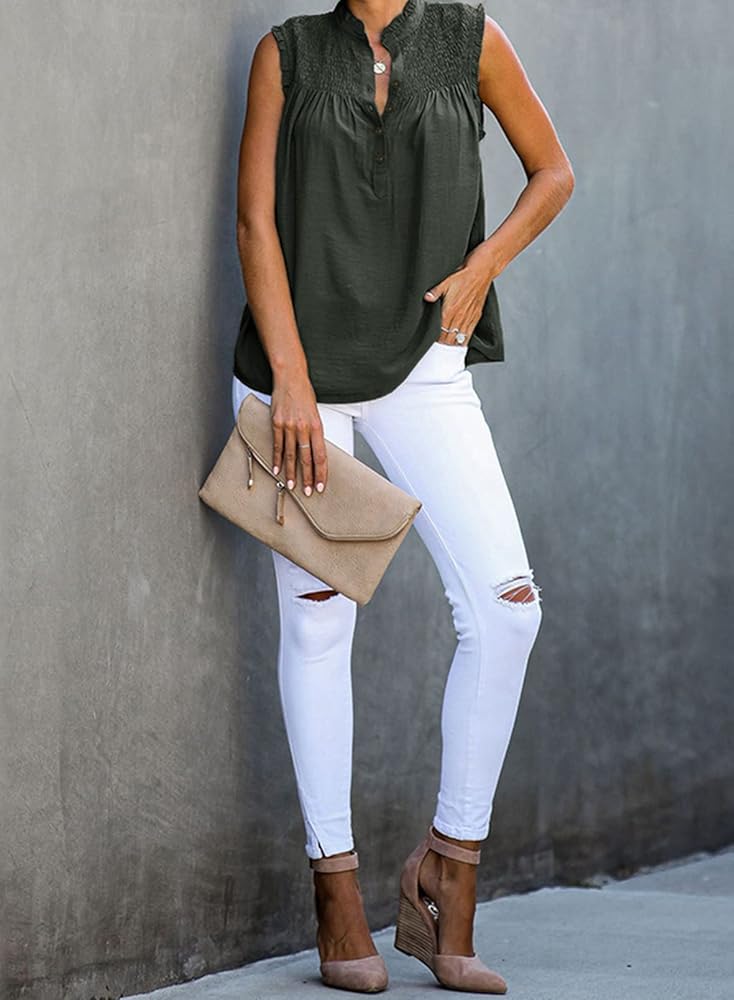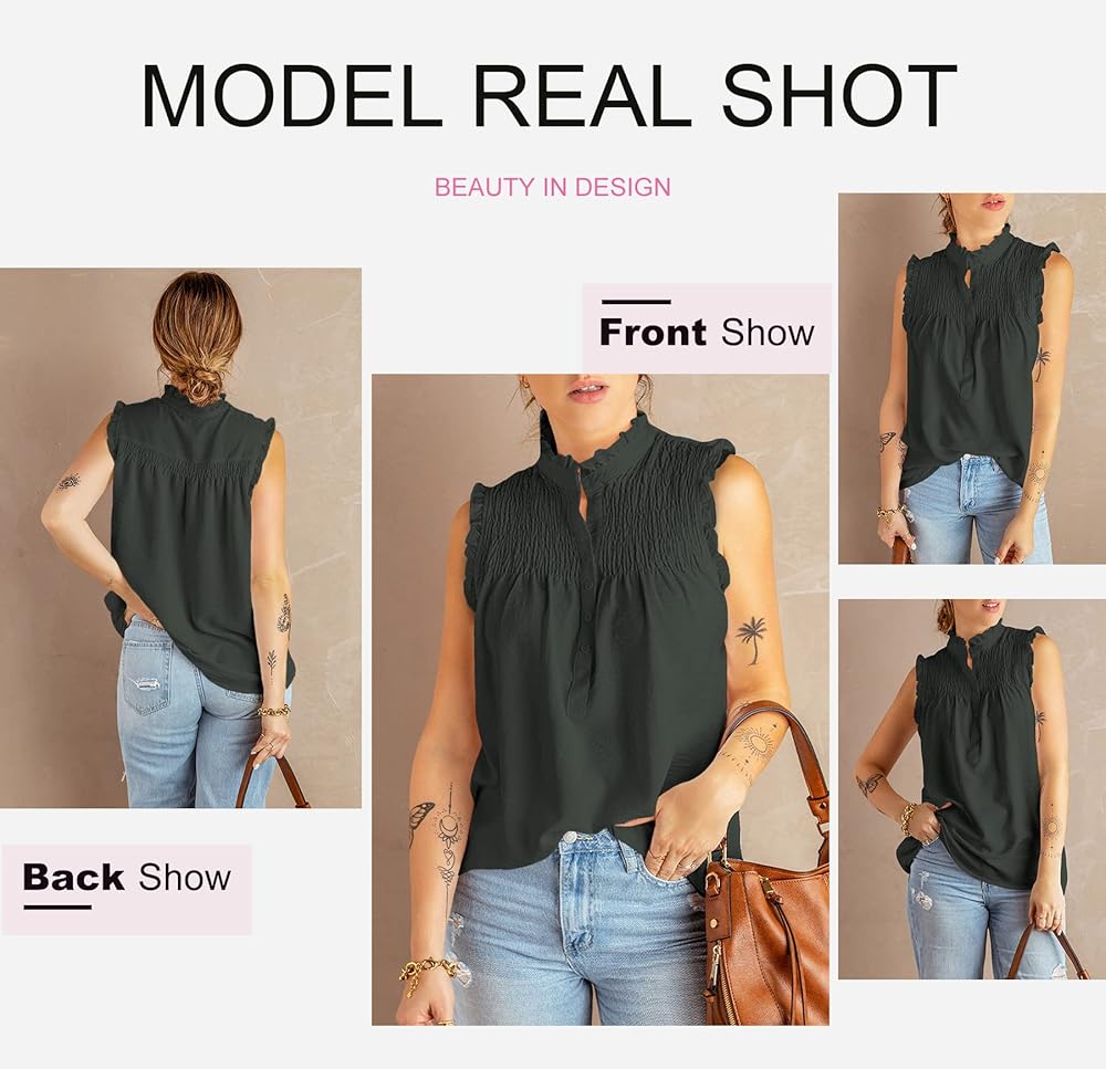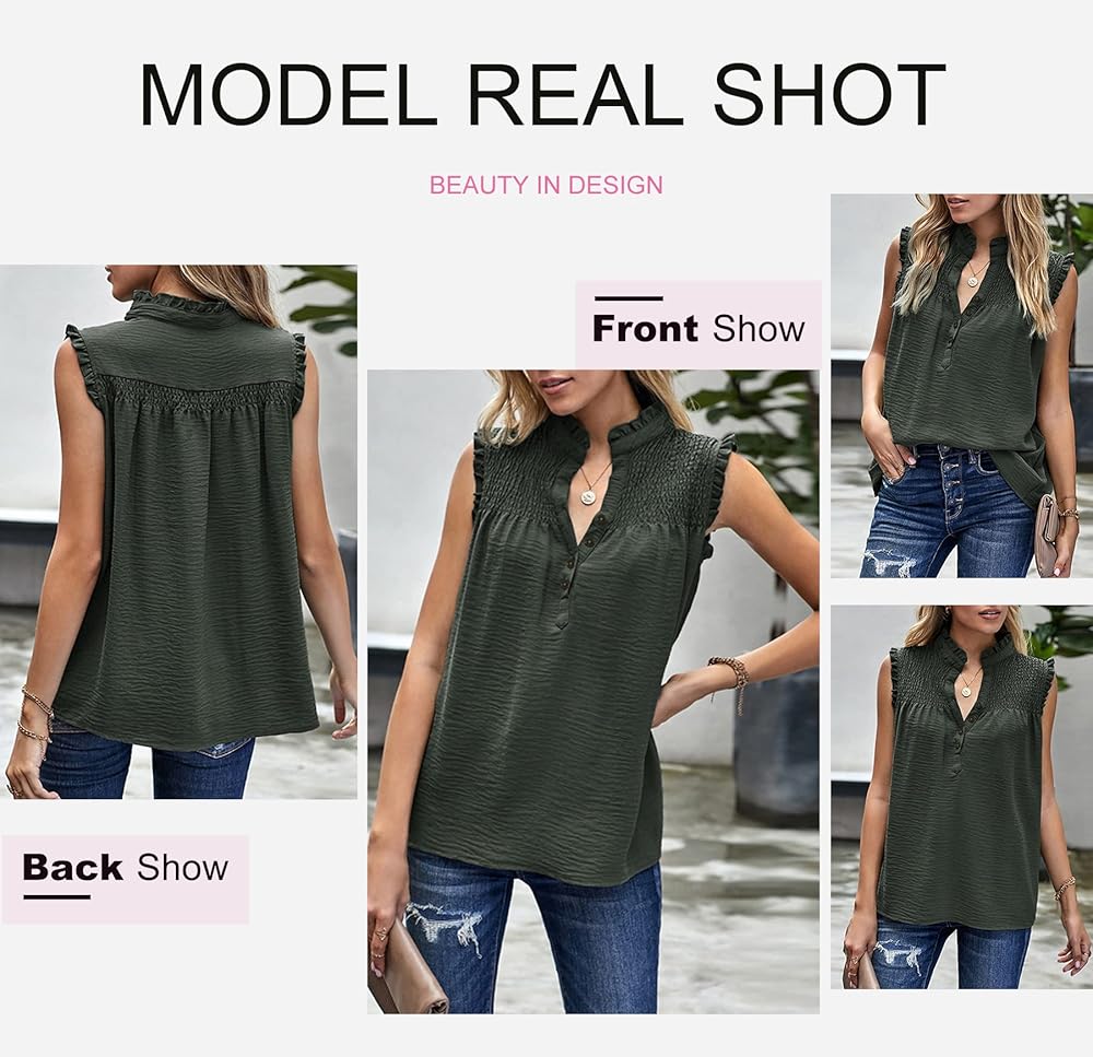 【المميزات】: قمصان بدون أكمام بأكمام مكشكشة، منقط بطباعة دانتيل، بدون أكمام، منقط سويسري، رقبة دائرية، لون ثابت، كم فضفاض، مقاس فضفاض، شيفون، رفرفة، لطيف، كاجوال، أنيق ورومانسي.