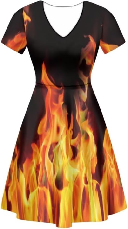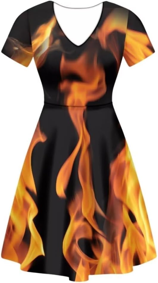 السمات: رقبة على شكل حرف V، أكمام قصيرة، خط على شكل حرف A، فستان متوسط الطول. تصميمات الأزياء: مجموعة متنوعة من الأنماط للاختيار منها، مثل عباد الشمس والفضاء والحيوانات والفطر والقبلية وما إلى ذلك. كما يمكن تخصيصها. تصميم فريد وحيوي.