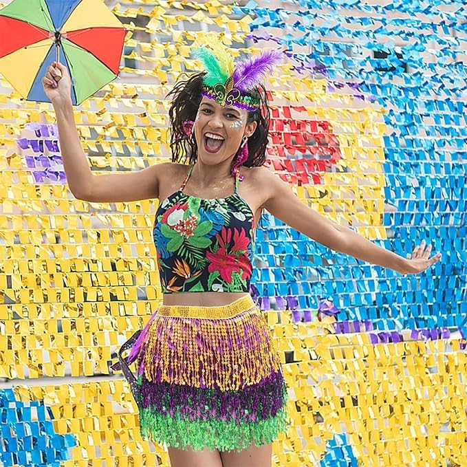 • Multi Occasion: Sequin fringe skirt and feather hairband in classic Mardi Gras designs and colors, mardi gras shawl poncho costume can be easily matched with different styles of clothing.Great for Mardi Gras parties, Mardi Gras parades, gifts,Western Birthday, Costume Party, Belly Dance, Halloween Party, 80's Themed Party, 90's Party, and more, helpful for releasing your charm.