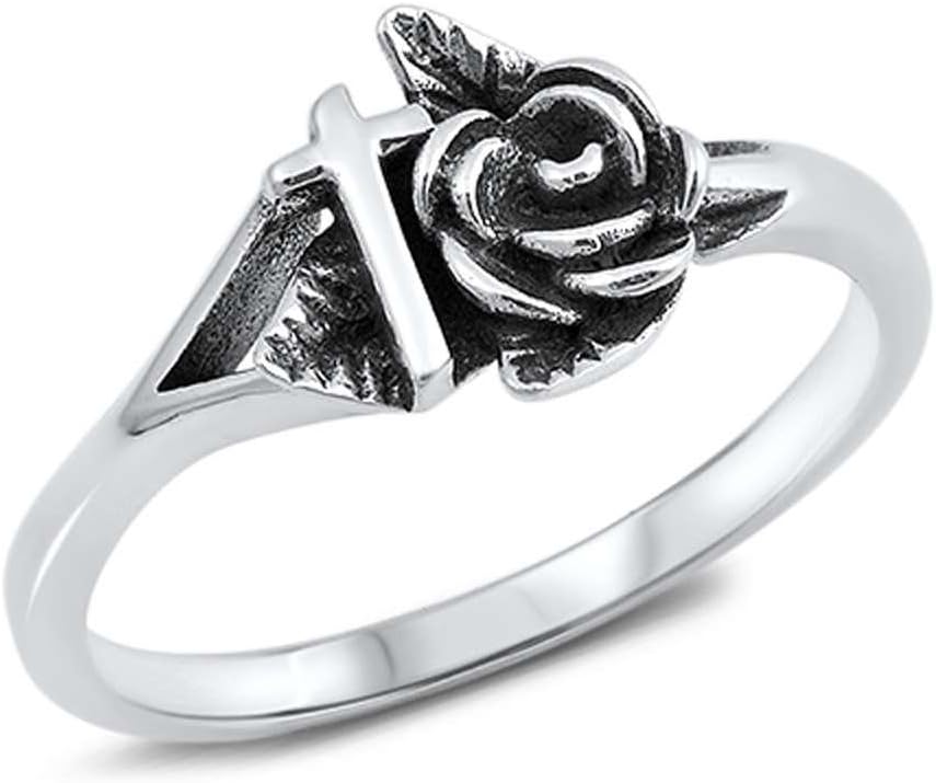 Oxford Diamond Co العتيقة الصليب الطهارة روز الفرقة .925 مقاسات خاتم الفضة الاسترليني 5-10