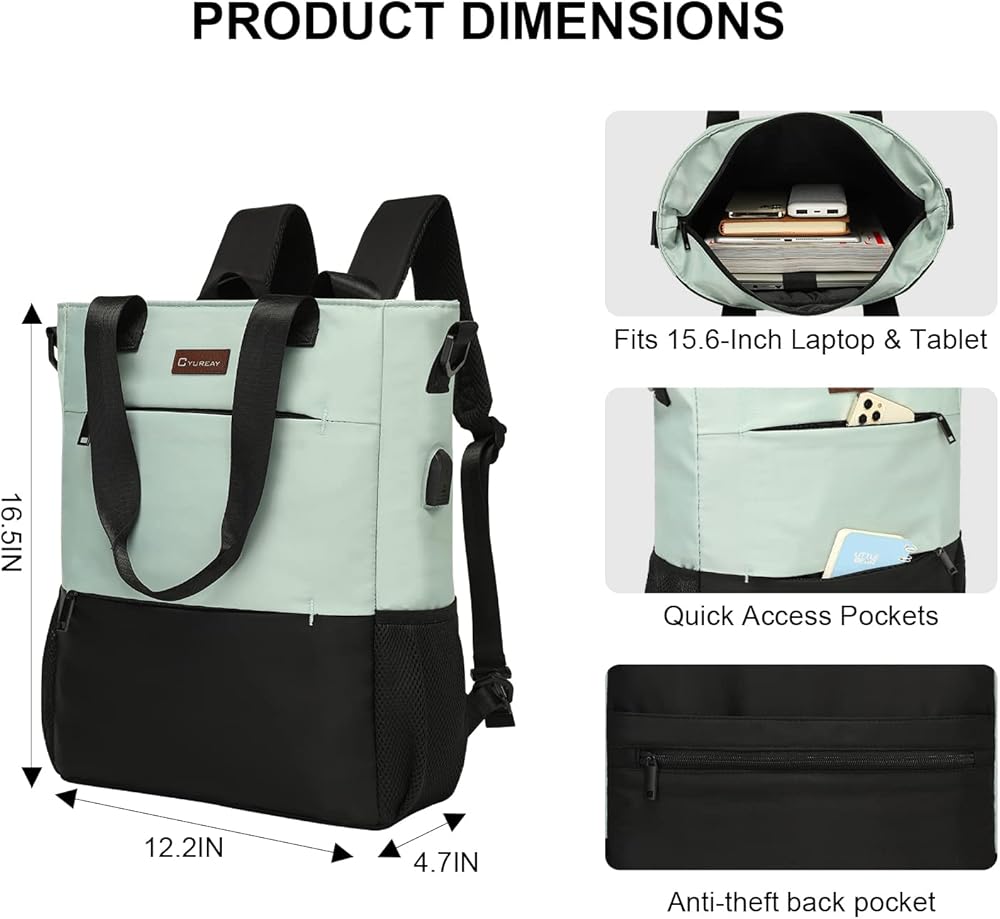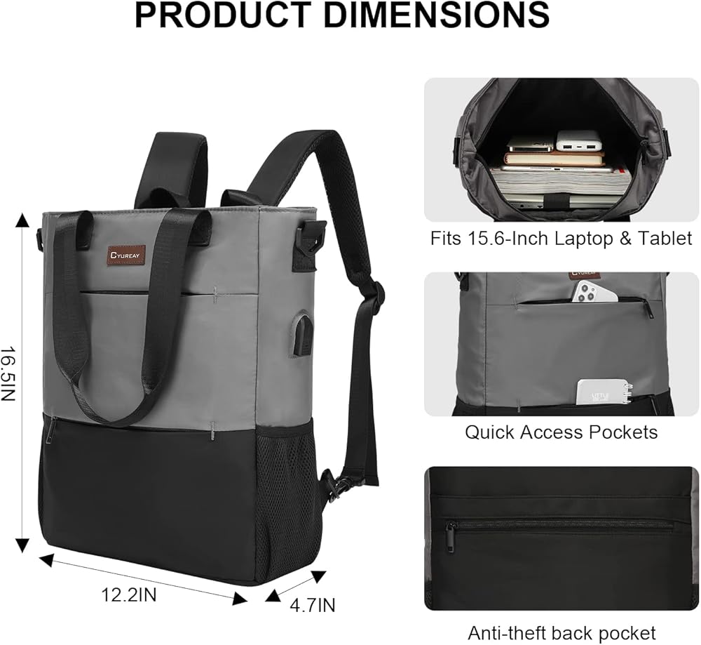 حقيبة ظهر CYURAYY قابلة للتحويل، حقيبة كمبيوتر محمول للنساء، حقيبة نهارية مقاومة للماء، حقيبة مدرسية يوم الأحد غير رسمية للعمل والكمبيوتر والمدرسة تناسب الكمبيوتر المحمول والكمبيوتر اللوحي مقاس 15.6 بوصة