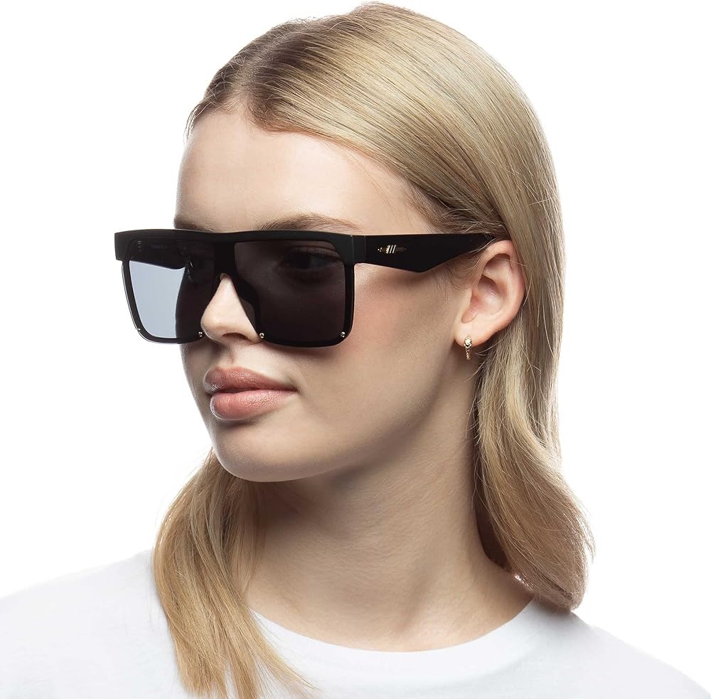 Take your look in a cool and fun direction with these Le Specs sunglasses, which feature oversized shield frames and subtle metallic trim.