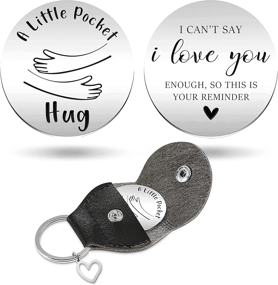 لا أستطيع أن أقول إنني أحبك بما فيه الكفاية رمز عناق الجيب مع سلسلة مفاتيح جلدية، عملة ملهمة من الفولاذ المقاوم للصدأ مزدوجة الجوانب هدية علاقة طويلة المدى للأصدقاء والصديقات