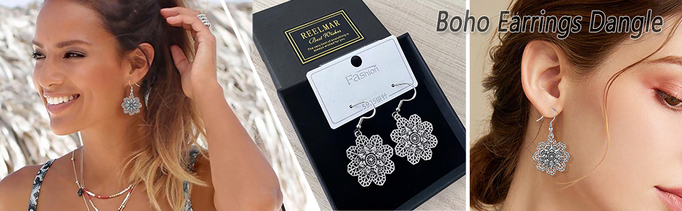 هدايا مثالية: أقراط زهرة بوهو متدلية، هدايا رائعة لنفسك ولأحبائك وعائلتك وأصدقائك في عيد الميلاد / المواعدة / الزفاف / عيد الأم / الذكرى السنوية / الخطوبة / عيد الميلاد / عيد الحب.