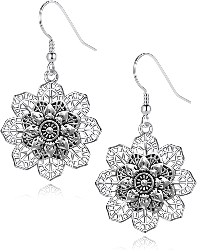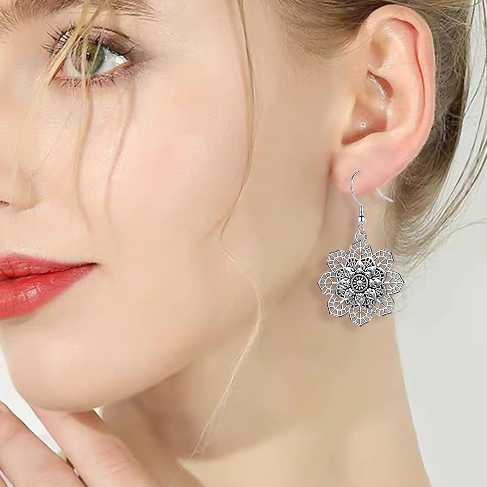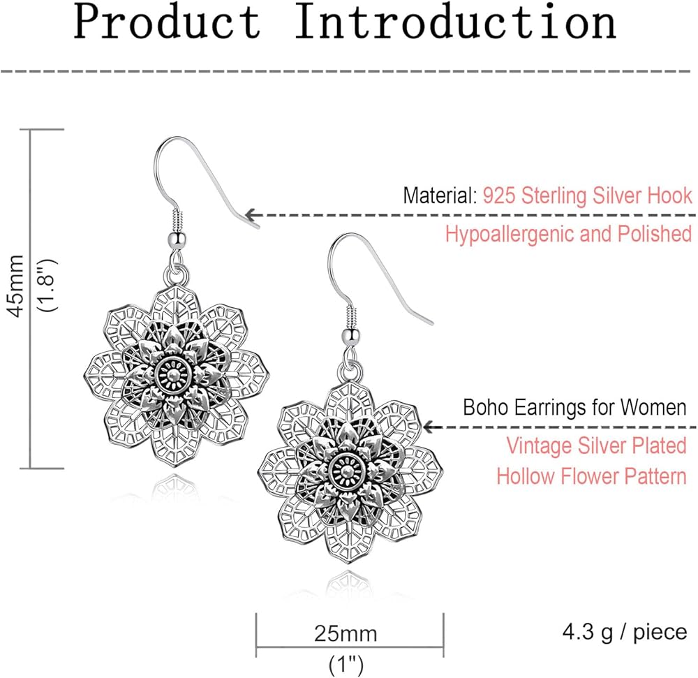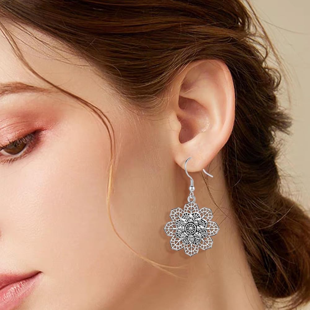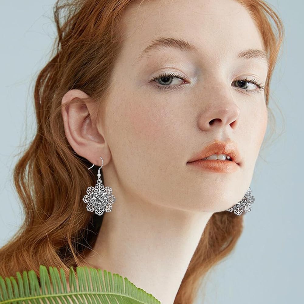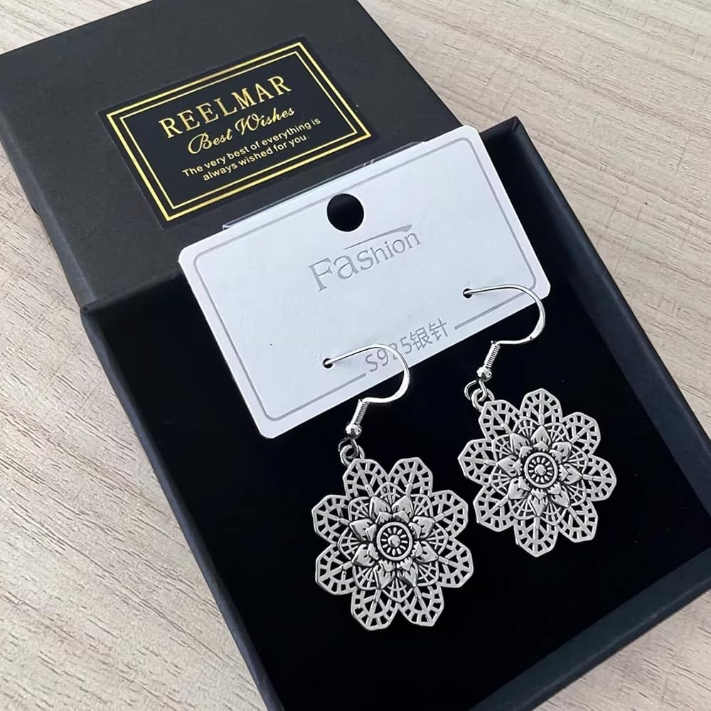 أقراط زهرة عتيقة: زهرة ماندالا فضية عتيقة، تتمايل في الريح تحت شحمة أذنك، تعزز النمط البوهيمي الفريد مع زيادة الجمال الديناميكي، يسهل تنسيقها مع أي ملابس. سوف تكون الشخص الأكثر لفتًا للانتباه في الحشد.