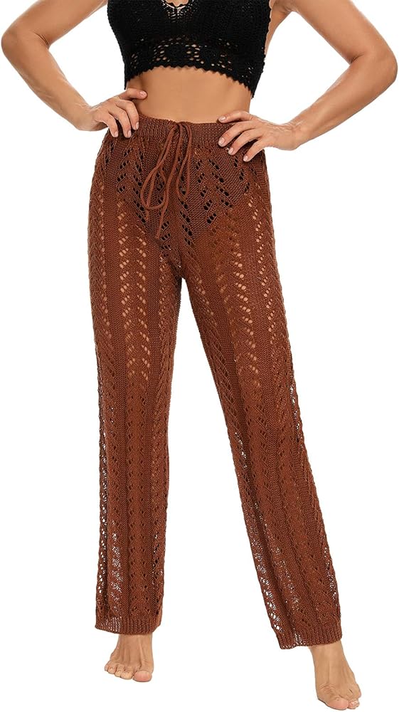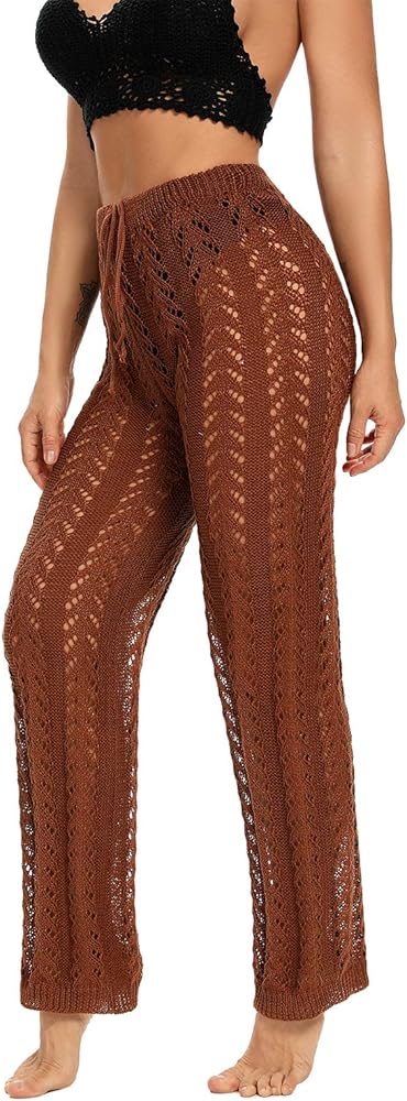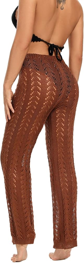 - المزايا: أغطية شاطئ محبوكة صيفية، سراويل شفافة مجوفة مصنوعة يدويًا من الكروشيه، سراويل بيكيني عالية الخصر للتحكم في البطن