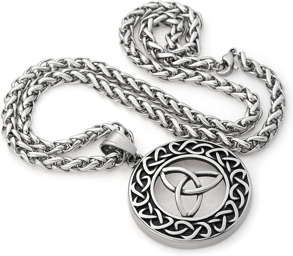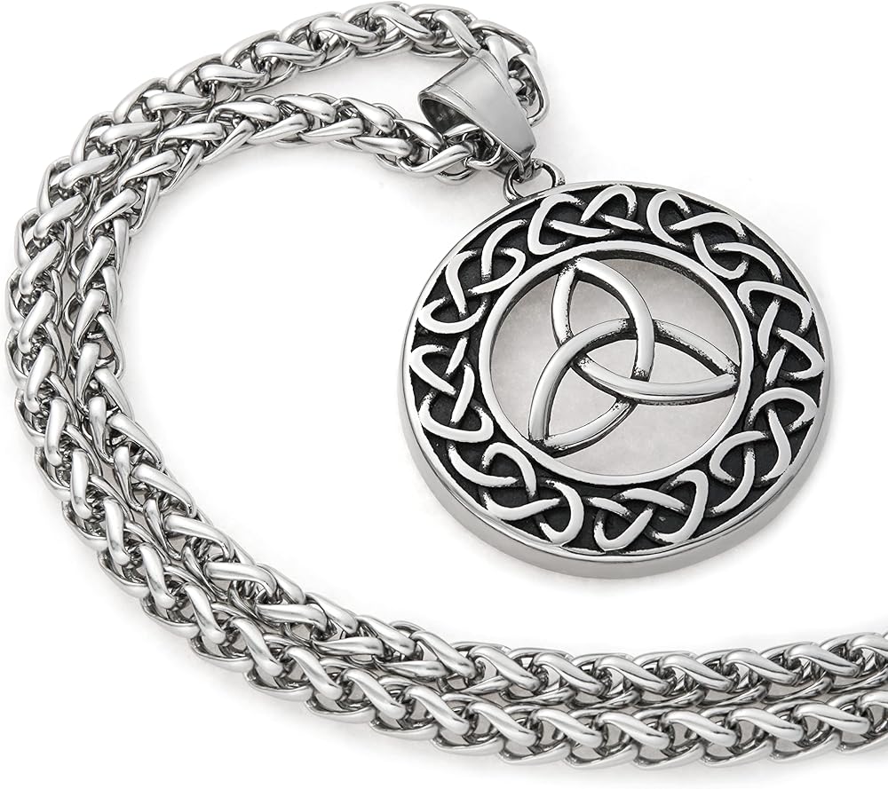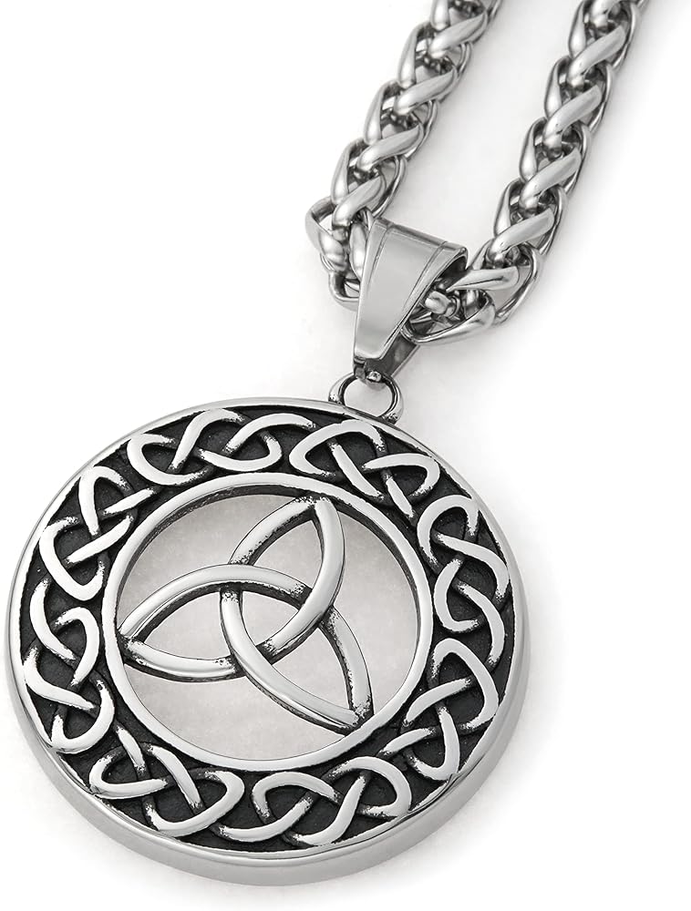 • المواصفات: نحن نقدم قلادة Triquetra الأيرلندية بقياس 20 بوصة وطول 28 بوصة مع قلادة 2 بوصة × 1.5 بوصة وسوار حجر اللافا كهدية إضافية. السوار الأيرلندي الإضافي مصنوع جيدًا من الفولاذ المقاوم للصدأ مما يعطي لمعانًا مع أي الزي ستتضمن العبوة قطعتين (1 قلادة و1 سوار).