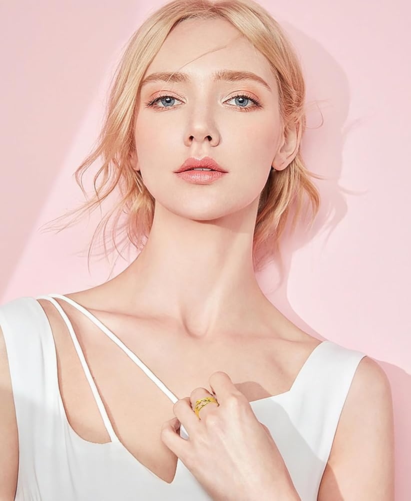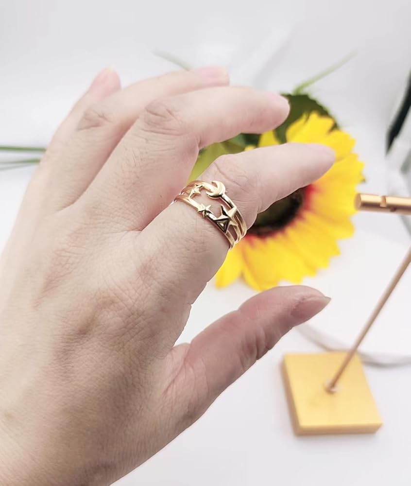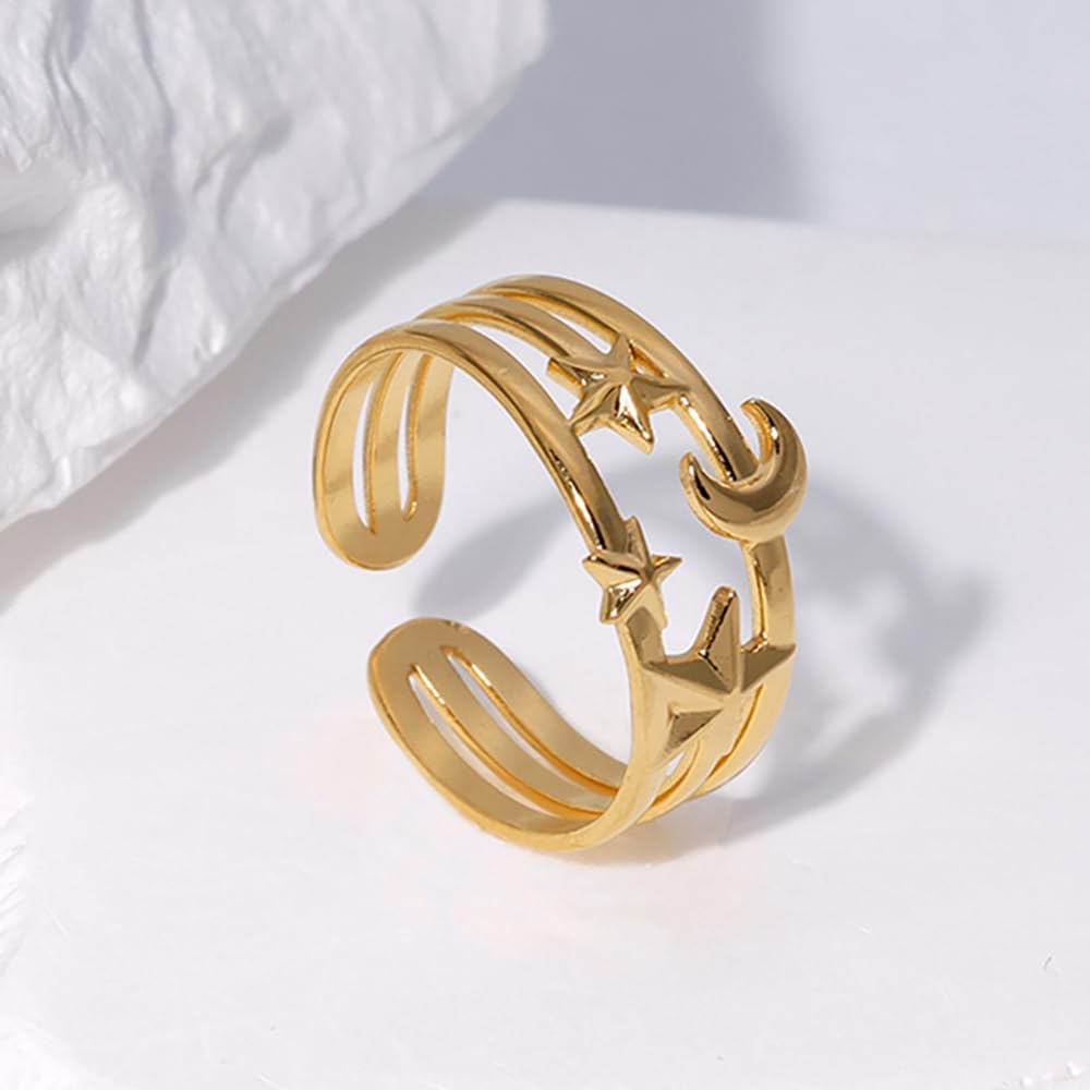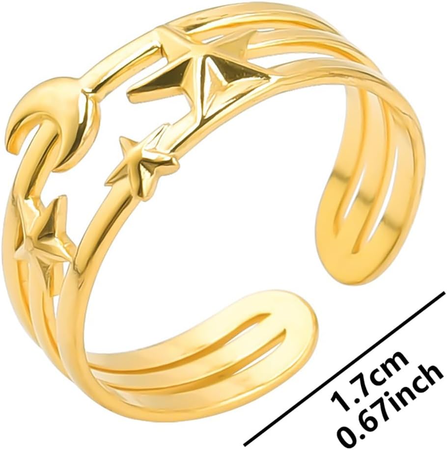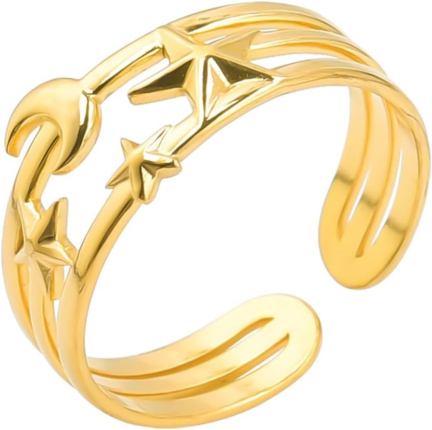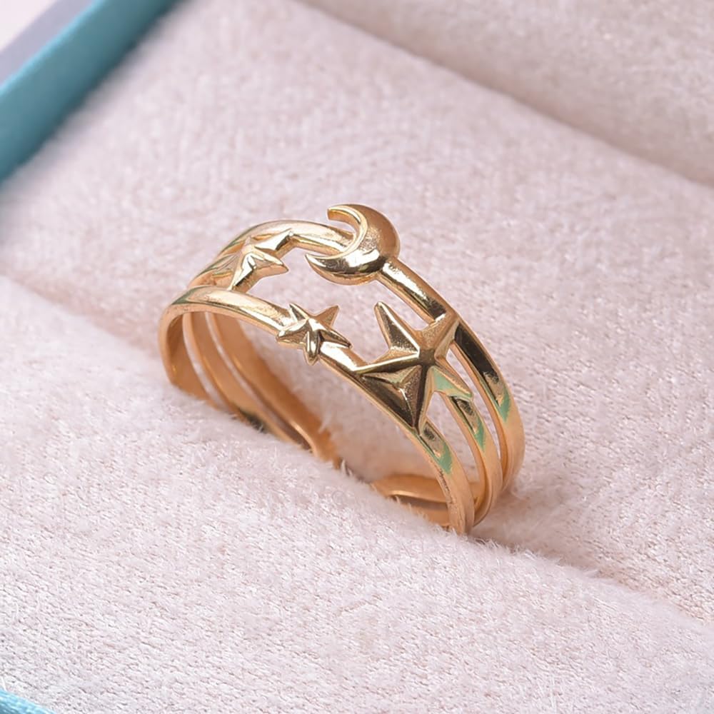خاتم ستارموون الذهبي - خاتم ستارموون مصنوع من الفولاذ المقاوم للصدأ الفاخر، وغير لامع، ومقاوم للتآكل، وخالي من النيكل، وخالي من الرصاص، وخالي من الكادميوم، ولا يحتوي على أي عناصر تسبب الحساسية.