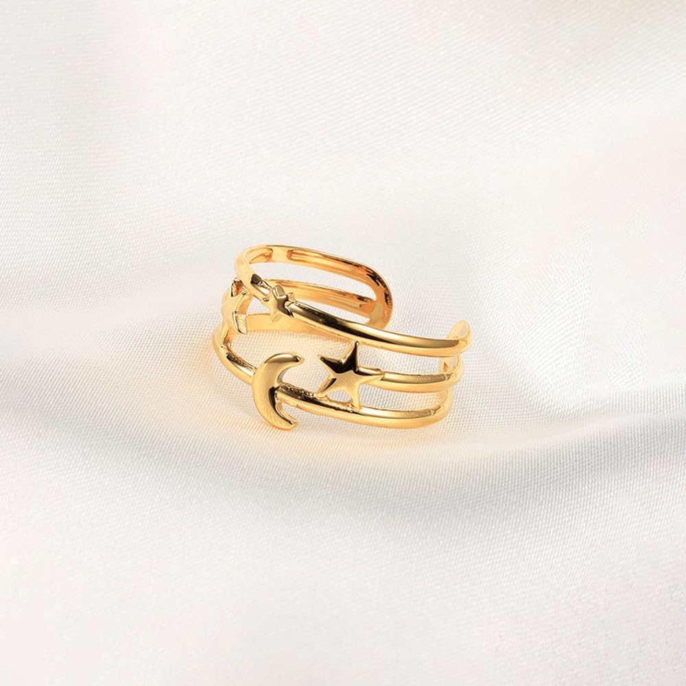 خاتم Starmoon - شكل الخاتم هو شكل النجوم والقمر. مجموعة متنوعة من الأشكال، تصميم فريد. ارتداء القمر والنجوم يمنحك السحر والأناقة.