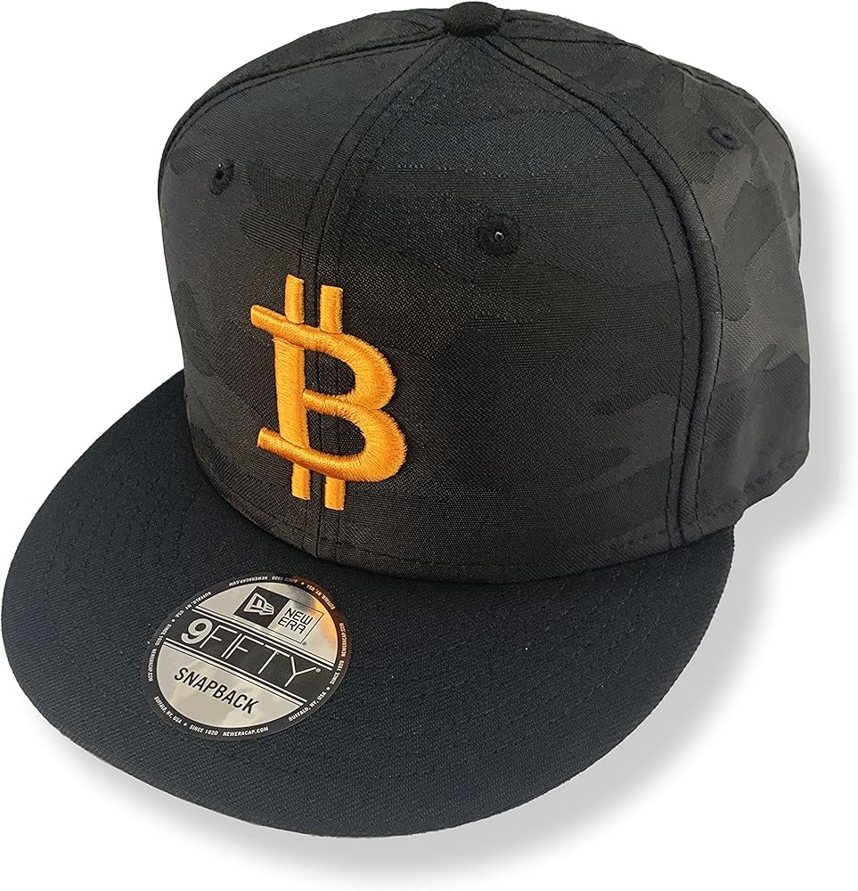Bitcoin Flat Bill Snapback Cap Adjustable Black Camo Cap with Orange 3D Puff Embroidery Live the Crypto Lifestyle. * Black New Era snap back camo cap with orange Bitcoin 3D Puff Embroidered logo * Cap color is black camo with black bill * Embroidery color is orange * One size with 7-position adjustable snap * 100% Polyester woven * High profile structured cap * LIMITED EDITION only 1,000 made! Once they're gone, they're gone!
