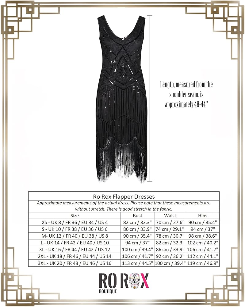 متوفر بمقاسات XS (الولايات المتحدة 4)، S (الولايات المتحدة 6)، M (الولايات المتحدة 8)، L (الولايات المتحدة 10)، XL (الولايات المتحدة 12)، 2XL (الولايات المتحدة 14) و 3XL (الولايات المتحدة 16)