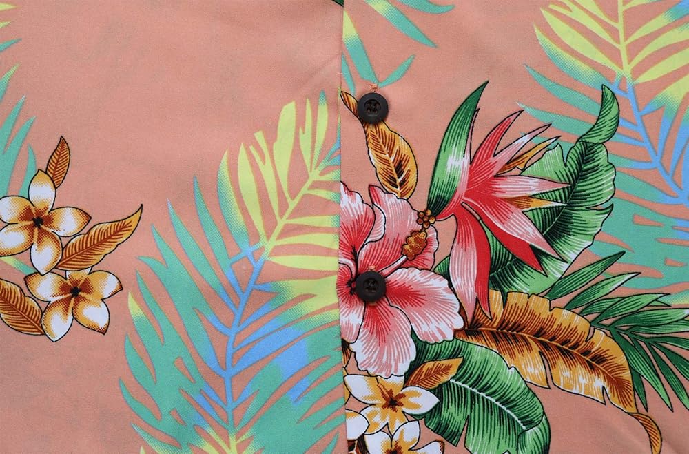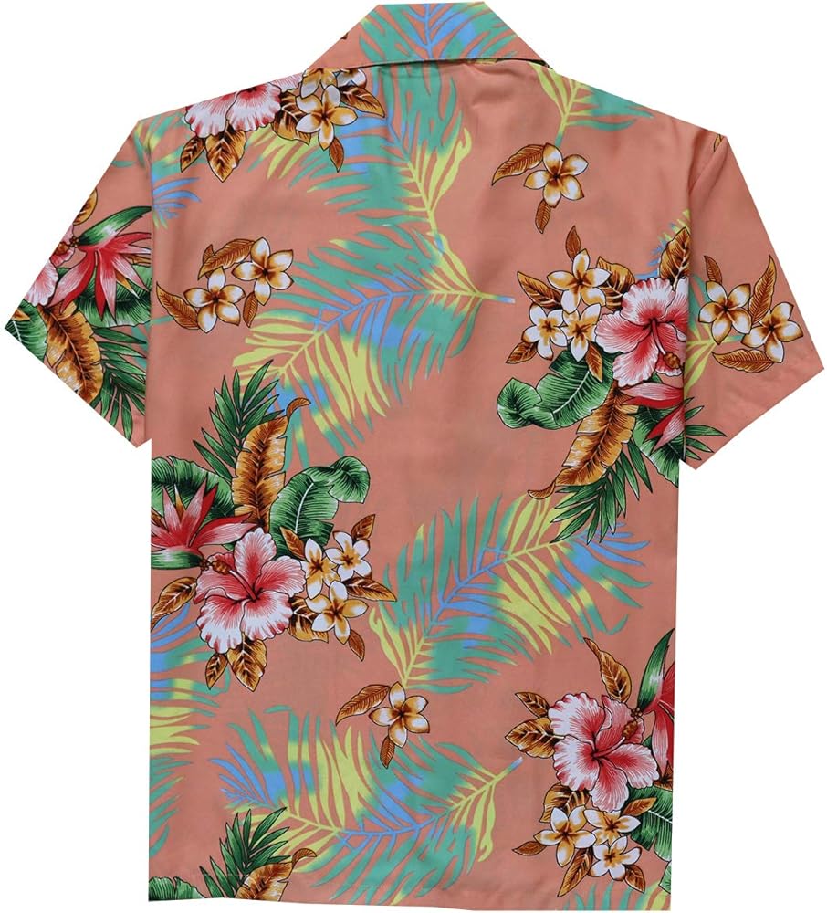 Alvish Hawaiian Flower And Leaf Print Beach Aloha Party Camp Short Sleeve Holiday Casual Shirt for Boys