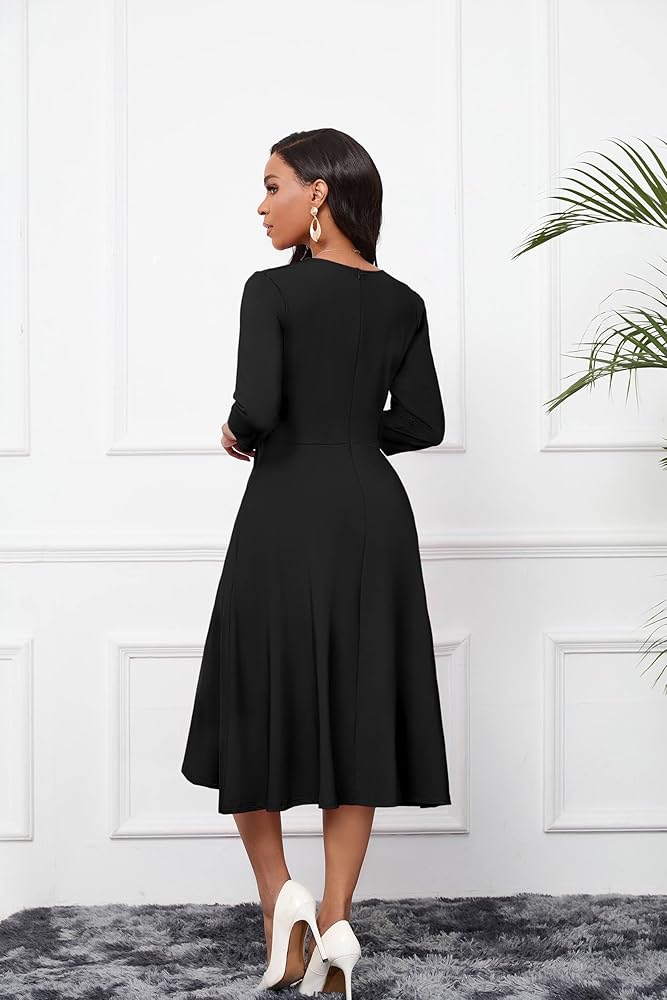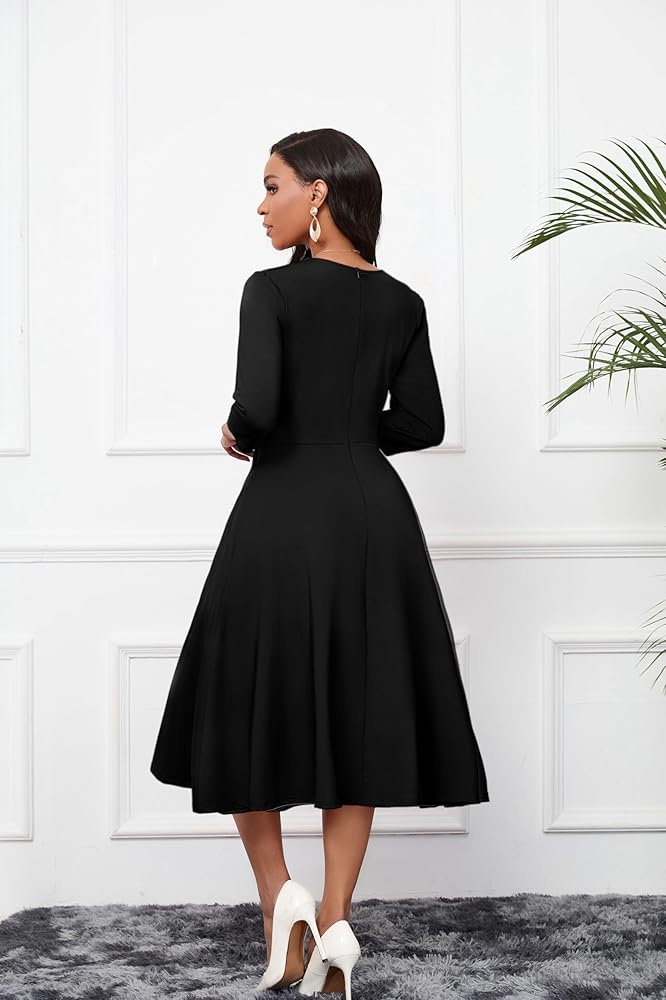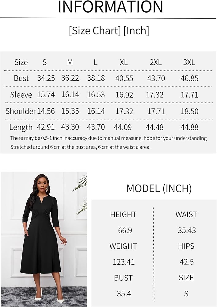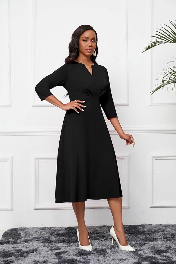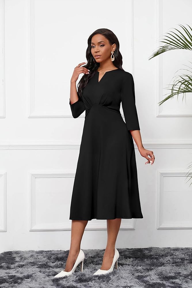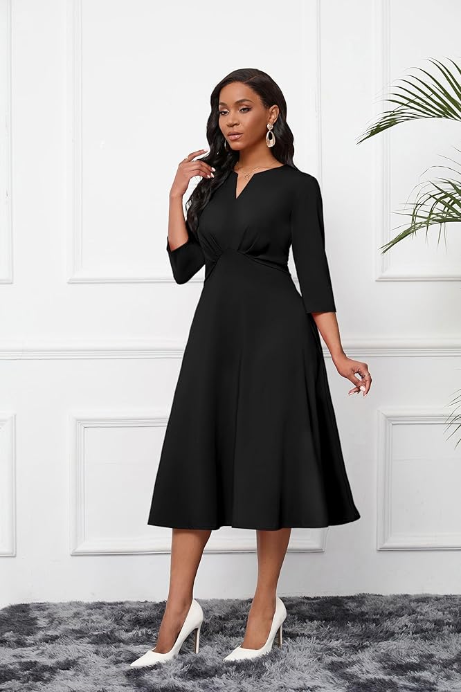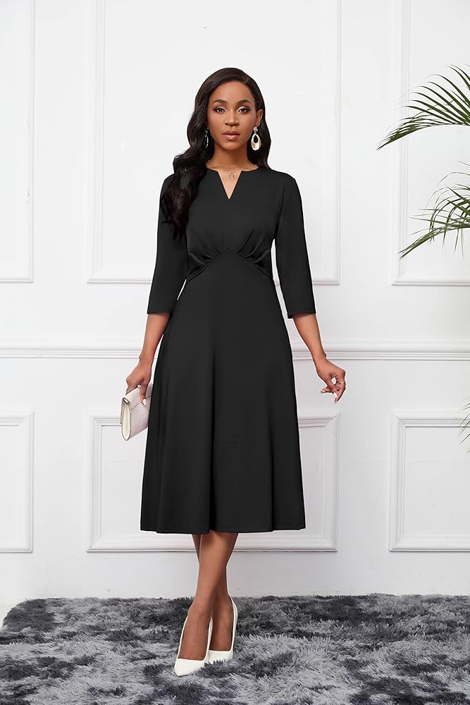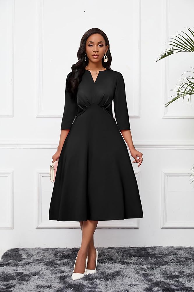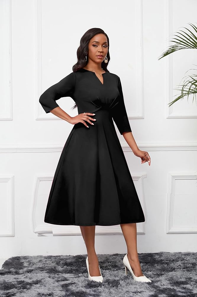 【مزيج ومطابقة الموضة المذهلة】هذا الفستان ذو الأكمام 3/4 للنساء هو الرفيق المثالي للمناسبات شبه الرسمية والعادية مثل العطلات، وحفلات الزفاف، والجنازات، والحفلات التنكرية، وما إلى ذلك.