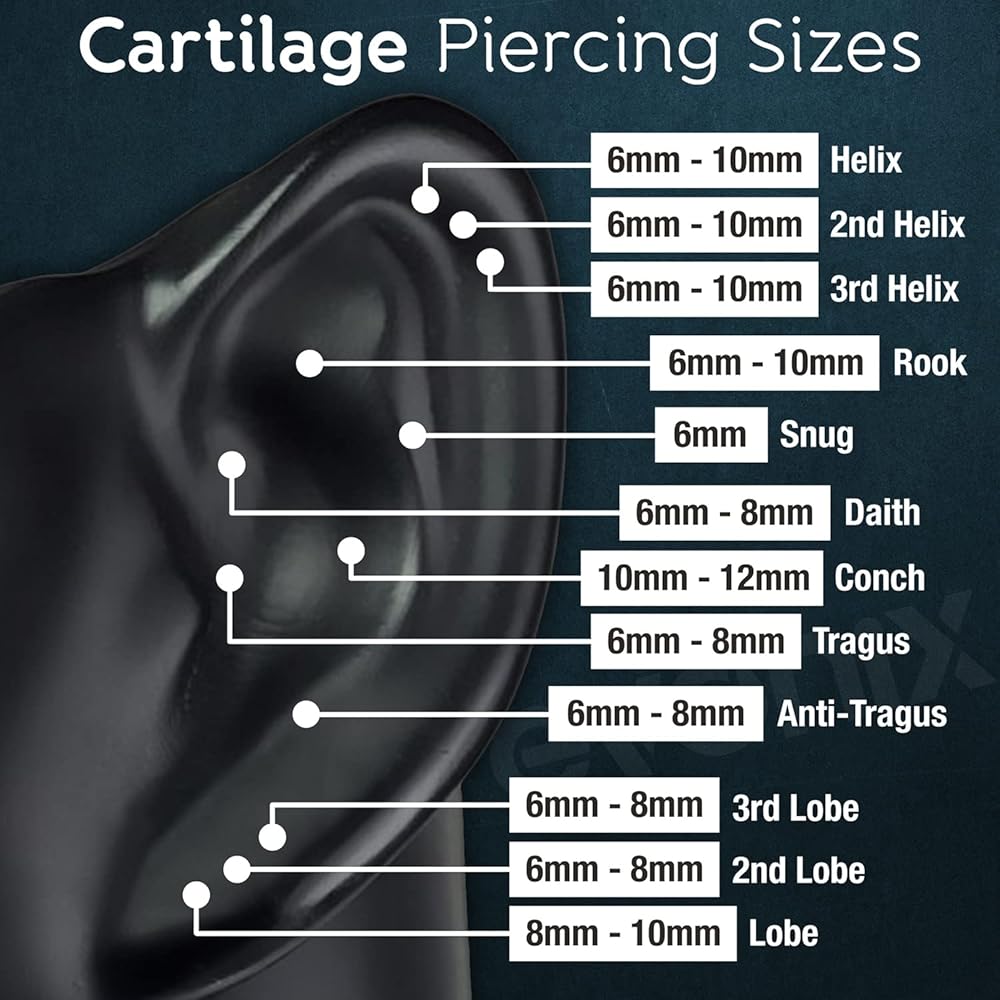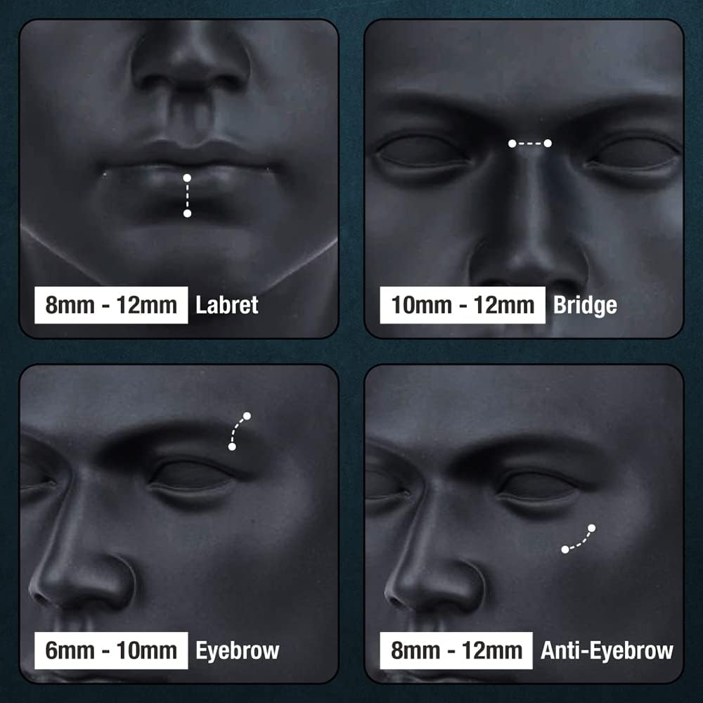These curved barbell 16g vertical labret jewelry can be used for Anti-Tragus, Conch, Triple Forward Helix, Helix, Lobe, Rook, Tragus, Transverse Lobe, Triple Forward Helix, Vertical Labret, Vertical Tragus piercings.