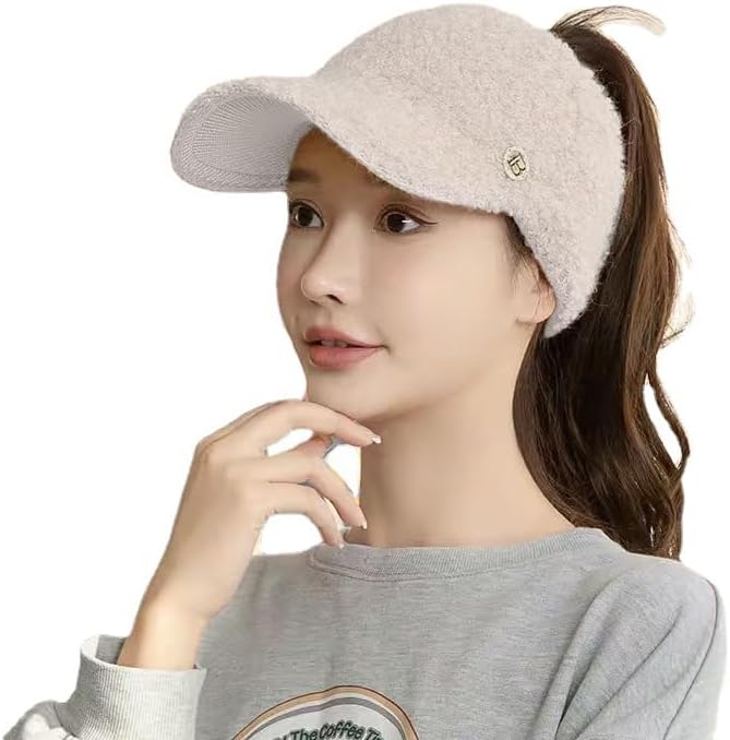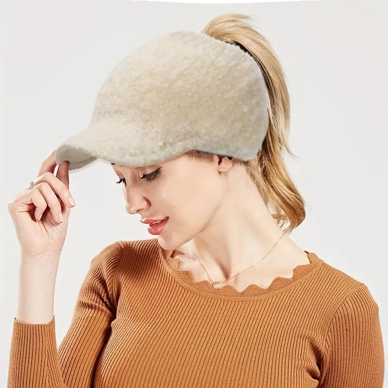 قبعة شتوية من صوف الحمل على شكل ذيل حصان للنساء مفتوحة من الأعلى، قبعة بيسبول دافئة للطقس البارد