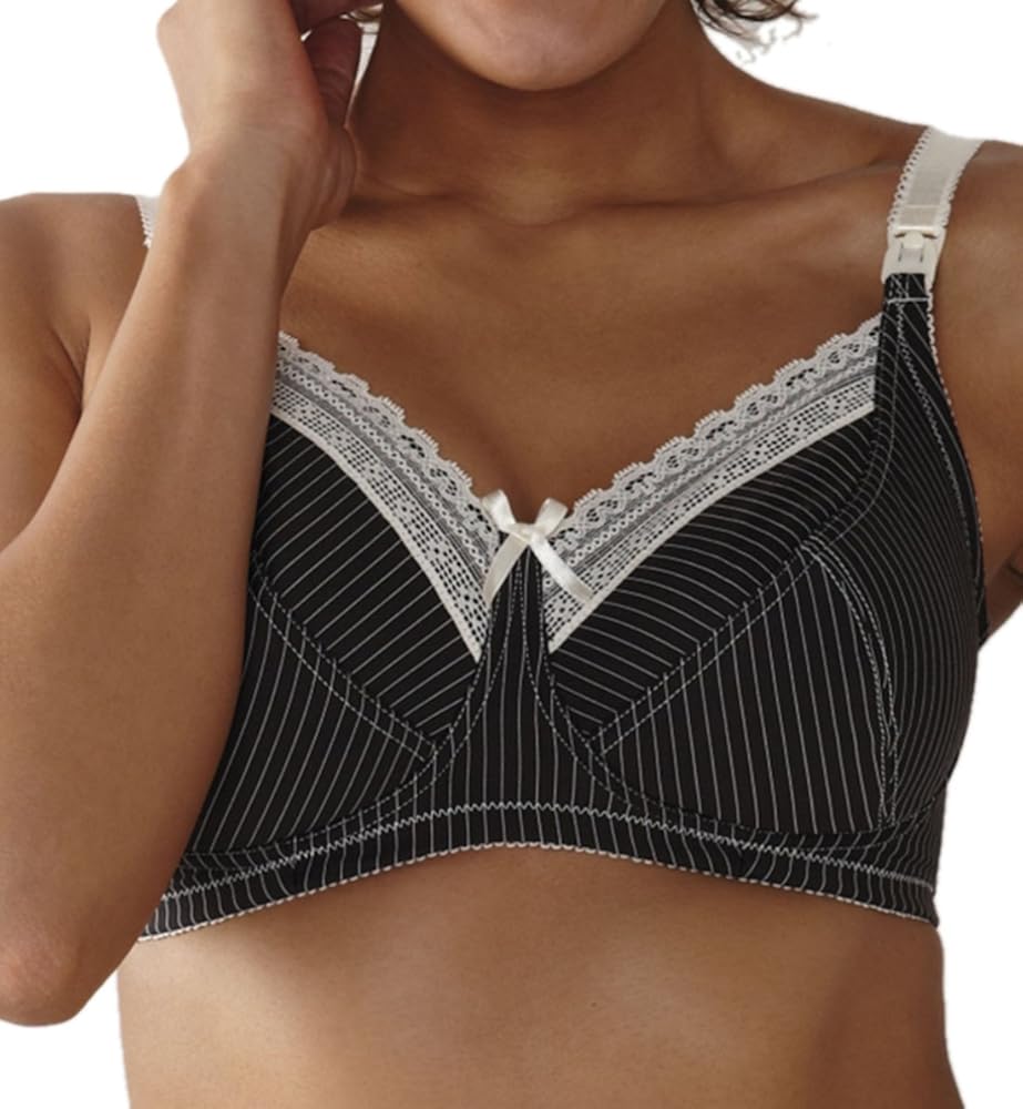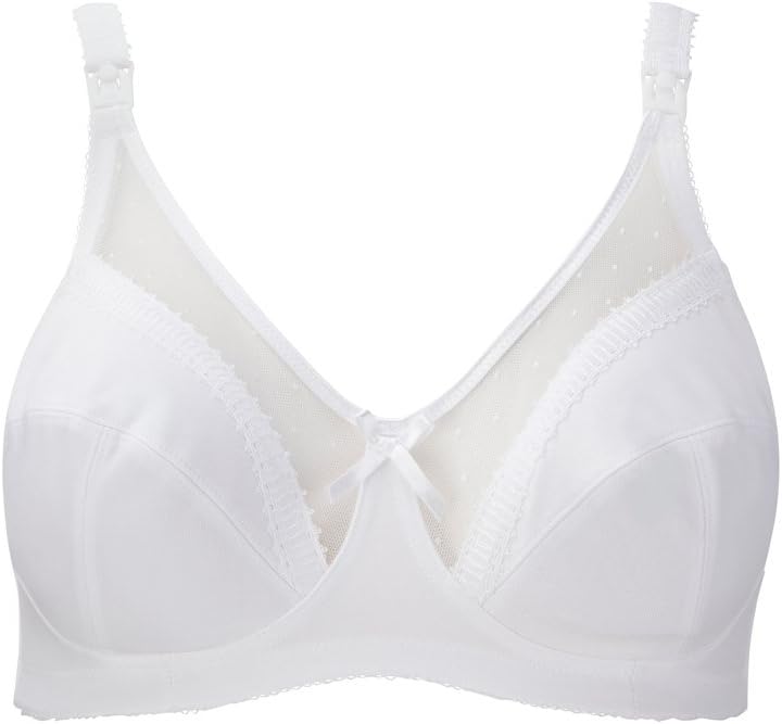 A 'beautiful basic' Nursing bra. Charlotte gives the impression of being pretty and delicate but is surprisingly supportive and gorgeously comfortable. Now available in JJ and K cups, in a choice of white, black or skin-tone. Royce Lingerie garments can be safely machine washed on a cool, delicate/gentle cycle, or hand washed, and are best dried naturally. Royce Lingerie is a family-run business established in 1991 in the UK. Royce is well-known and celebrated throughout the industry for their focus on non-wired bras, including nursing, sports, and general support bras. As the benefits of wearing a wire-free bra become more and more well-known, Royce has developed a wide selection of wireless styles in an array of colors, prints, fabrics, and sizes, from AAA cup to K cup. Most lingerie brands have at least one non-wired bra in their offering, but Royce Lingerie is the Only brand that concentrates purely on designing wire-free lingerie with the perfect fabrics, trims and components for each style. The dedicated Royce design team works closely with wear-testers to ensure each new style is of the highest quality, fits and supports beautifully, and meets the specific needs of the customer. The result is beautifully comfortable, great fitting, and truly supportive non-wired lingerie that looks and feels fabulous. When it comes to wire-free, whatever your needs, you can trust Royce Lingerie to provide the perfect bra. All cup sizes are listed in UK sizing - refer to the size chart at the top of the page for their US or EU equivalent.