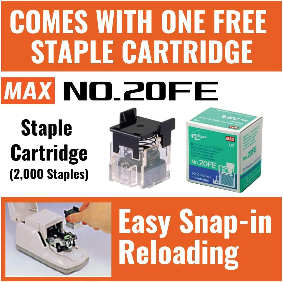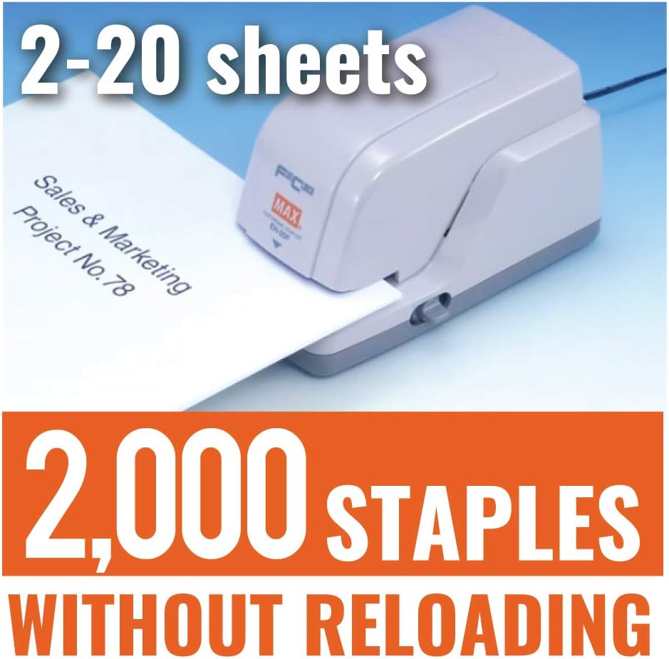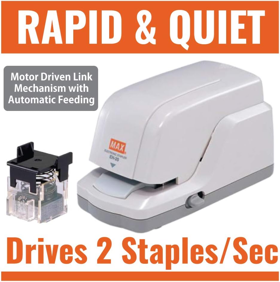 MAX USA CORP. EH-20F EH-20F دباسة وخرطوشة دباسة كهربائية مضادة للتكدس، غطاء 25 ورقة، رمادي، 3.3 بوصة × 3.2 بوصة × 6.6 بوصة