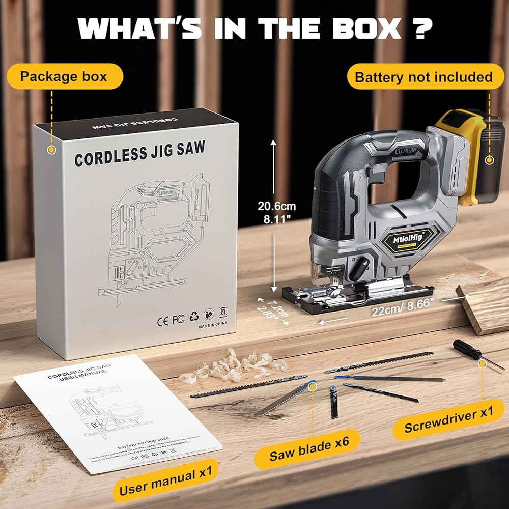• 【حرية لاسلكية】منشار كهربائي لاسلكي من MtiolHig، متوافق مع بطاريات ليثيوم أيون Dewalt 18V/20V مثل DCB206، DCB205، DCB204، DCB181، DCB182، DCB200، DCB203، DCB205-2، DCB204-2، DCB206-2، وأكثر من ذلك. استمتع بسهولة التشغيل اللاسلكي، وهو مثالي للمشروعات أثناء التنقل أو عندما تكون مصادر الطاقة محدودة. يرجى ملاحظة أن البطاريات غير متضمنة مع المنشار اللاسلكي.