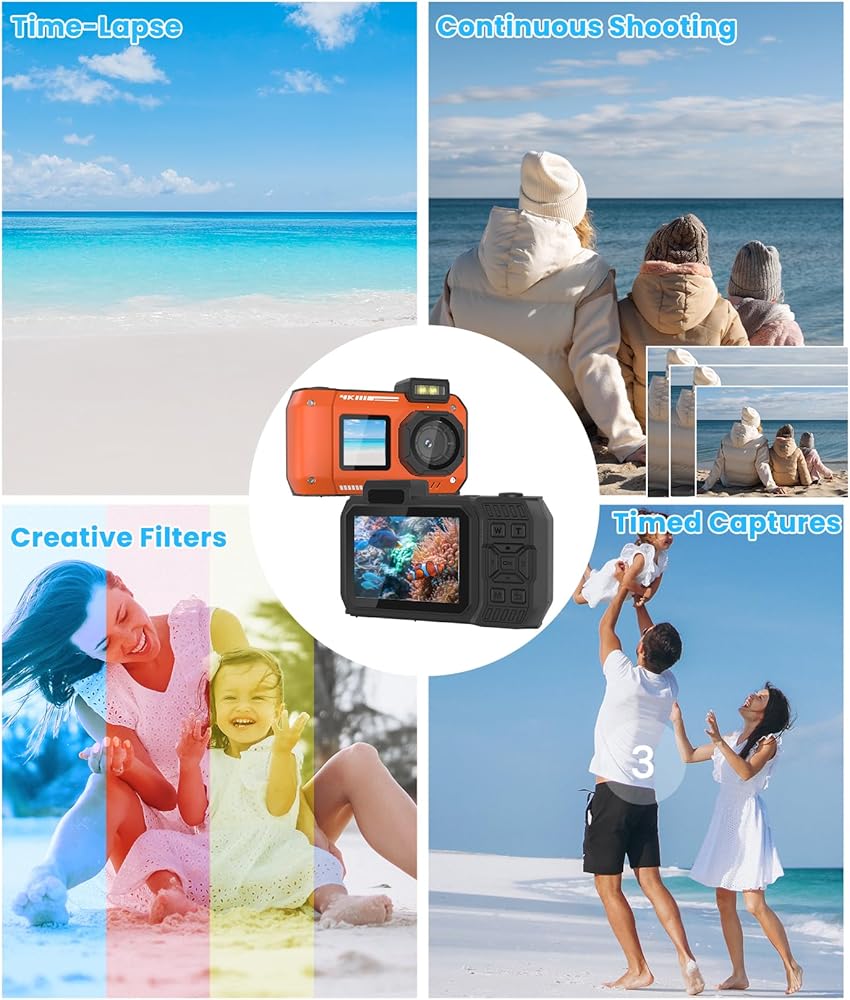 • إطلاق العنان للإبداع: توفر كاميرا الغطس هذه مجموعة من الميزات - التصوير المستمر، واللقطات الموقوتة، والتصوير الفوتوغرافي بفاصل زمني، والمرشحات الديناميكية، وفلاش قوي. التقط جوهر كل لحظة، بدءًا من التسلسلات السريعة وحتى اللقطات ذات التوقيت المثالي، مما يحول رواية القصص المرئية إلى تجربة نابضة بالحياة وآسرة. استكشف عالم التصوير الفوتوغرافي تحت الماء باستخدام أدوات متعددة الاستخدامات تتيح لك التعبير عن منظورك الفريد، مما يضمن تألق ذكرياتك بالإبداع والابتكار.