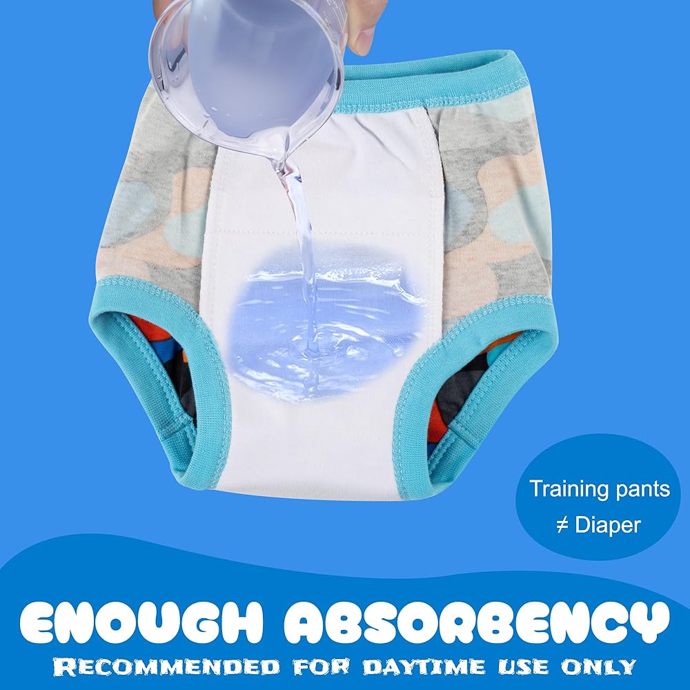 الكمال المنقوش: الأنماط الرائعة تجعل هذه الملابس الداخلية لتدريب الأطفال الصغار ممتعة وبداية جيدة للتدريب على استخدام المرحاض، مما يجعل طفلك يشعر وكأنه صبي أو فتاة كبيرة. وهي متوفرة بأحجام مختلفة، ومناسبة للأعمار من 12 شهرًا إلى 5 سنوات.