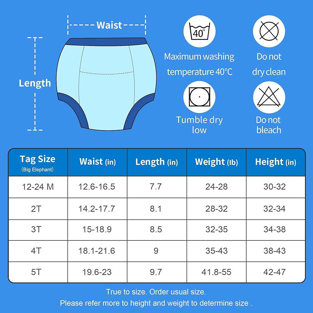 تمنع الحوادث البسيطة: مادة ناعمة ومريحة من سراويل تدريب Big Elephant، مصنوعة من القطن بنسبة 100%، ناعمة مثل بشرة الطفل وتصبح أكثر نعومة بعد الغسيل. إنها مثالية للاستخدام أثناء النهار.
