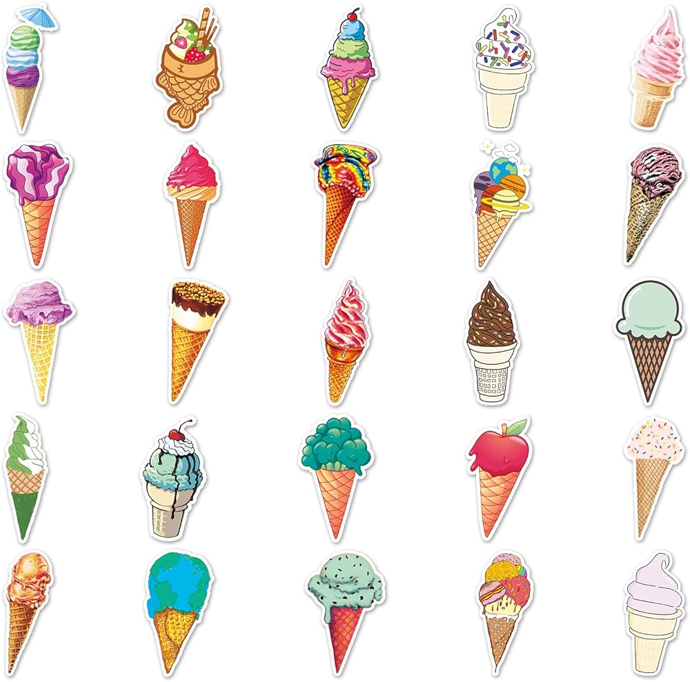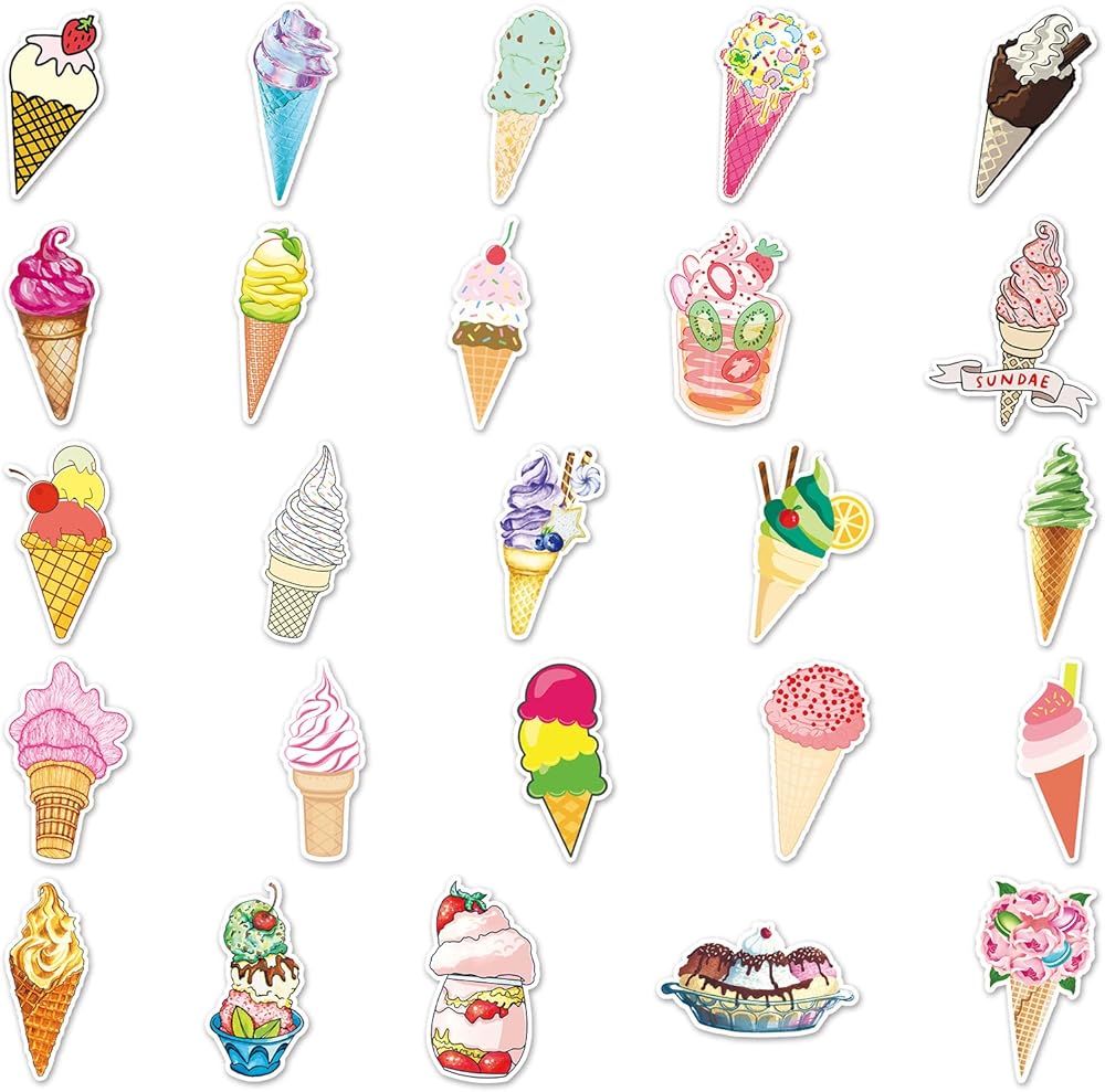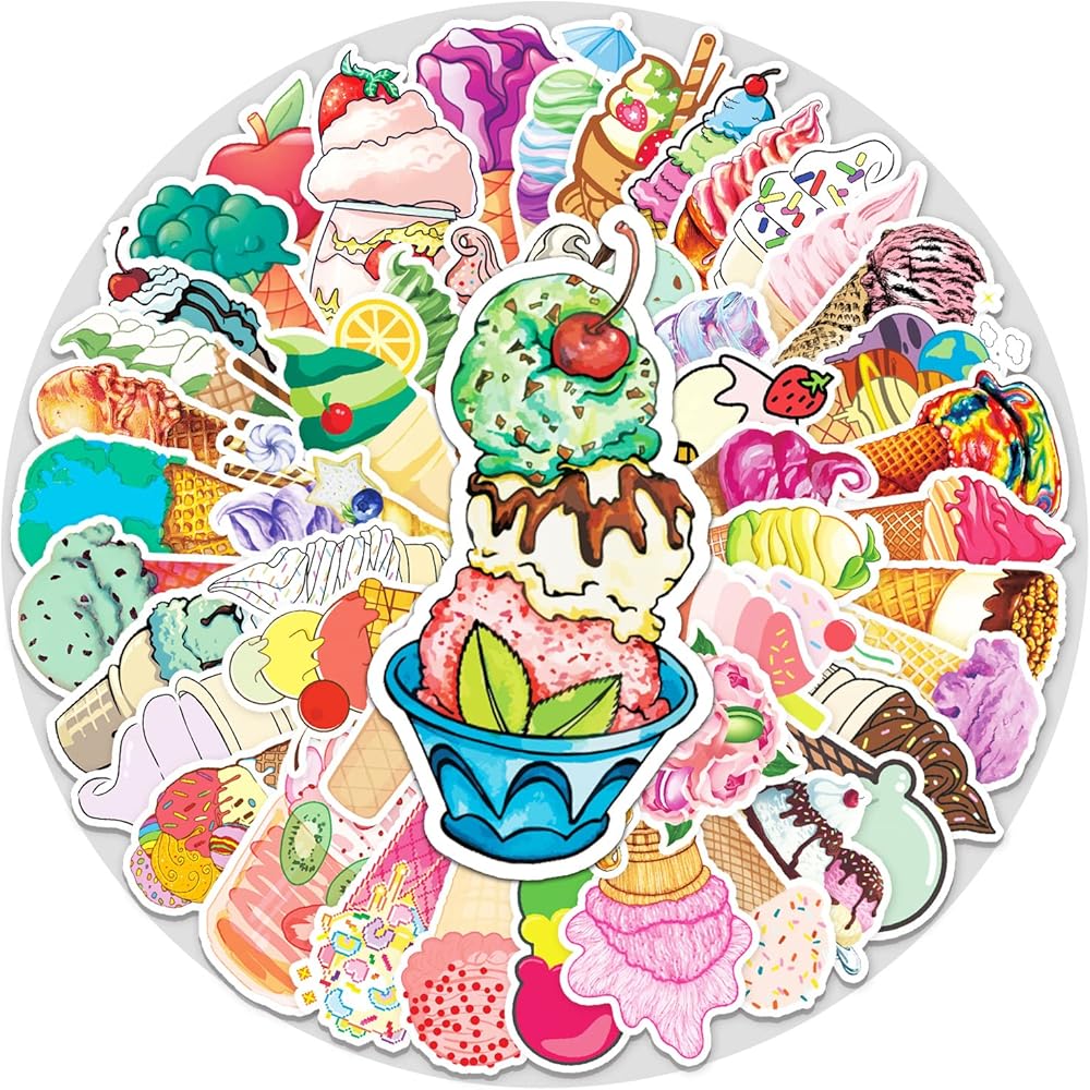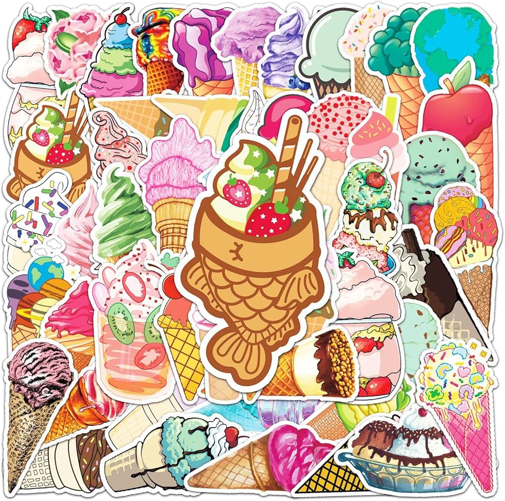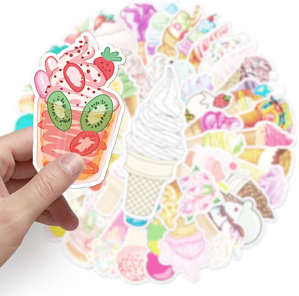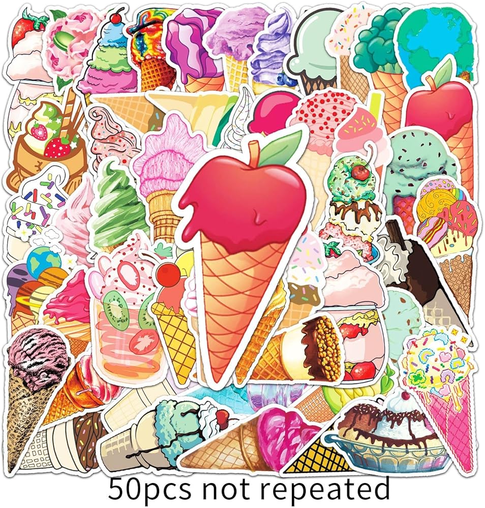 50 PCS Ice Cream Sticker. The stickers do not repeat,not random. With various styles are available for you to choose. Various styles, bright colors, lovely and unique.