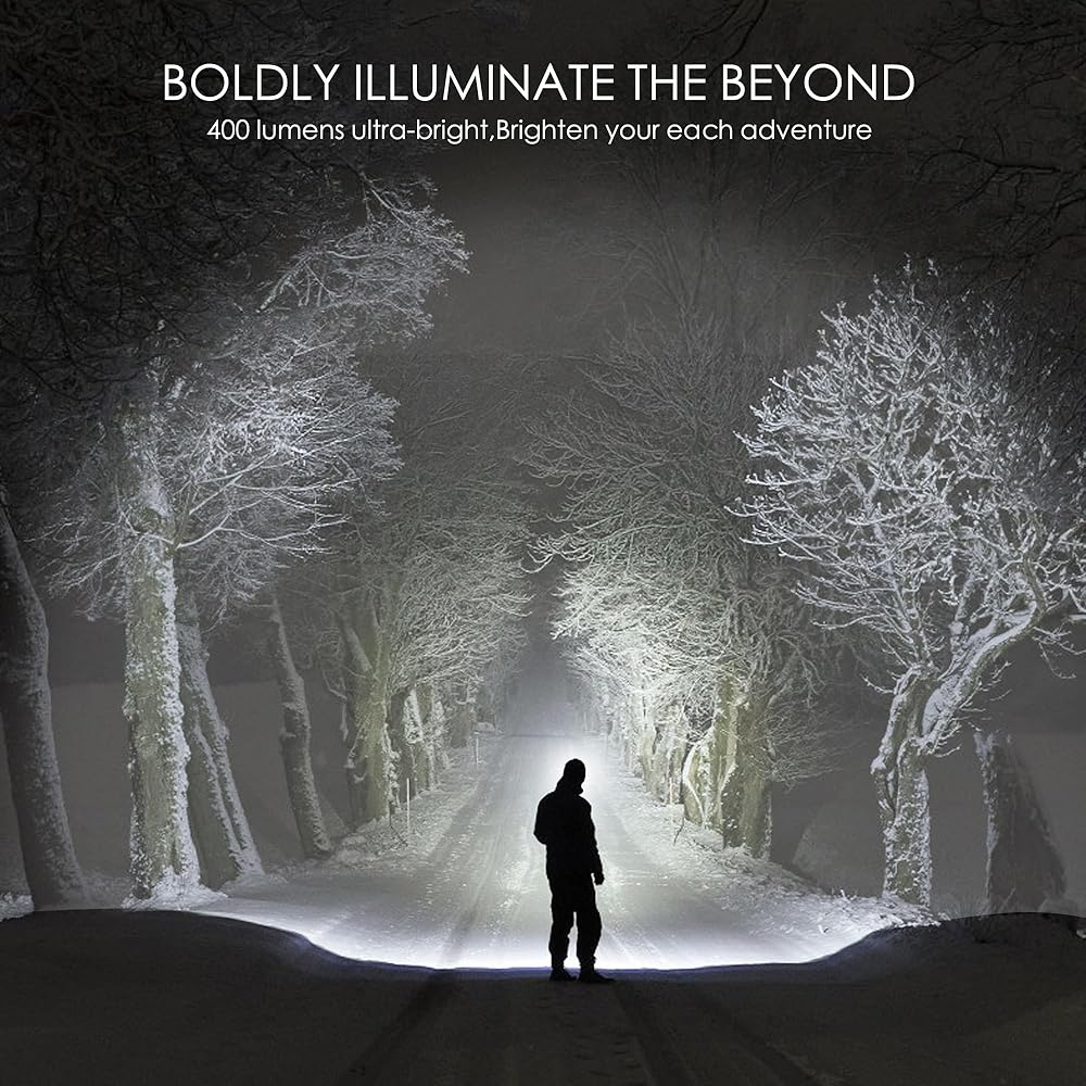 • 「تضيء الليل」 — سطوع قوي 400 لومن يضمن لك الرؤية بوضوح حتى 328 قدمًا، مثالي للتخييم والمشي لمسافات طويلة والأنشطة الخارجية.