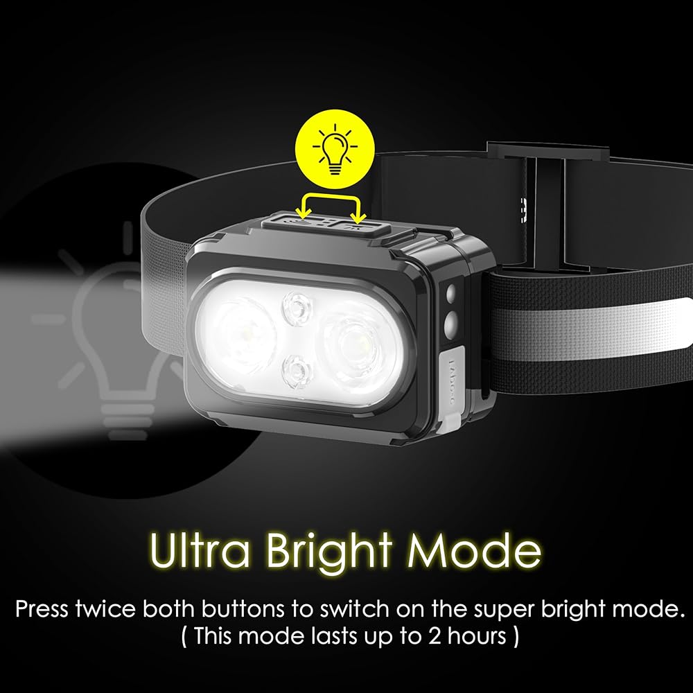 • 「ارتداء مريح لساعات」 - تم تصميم هذا المصباح الأمامي مع وضع راحتك في الاعتبار، ويتميز بتصميم خفيف الوزن وقابل للتعديل يمكن ارتداؤه لفترات طويلة دون التسبب في عدم الراحة.