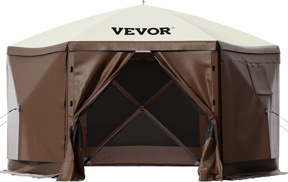 🎪🎪💗💗【 VEVOR Screen Shelter Tent with Full Set of Accessories】: Our pop-up screen tent includes a sturdy steel structure, ground stakes, and guy ropes to ensure stability in windy conditions. It also features a two-sided zipper design for smooth on-off and rainproof reinforced corners for a dry inner space.