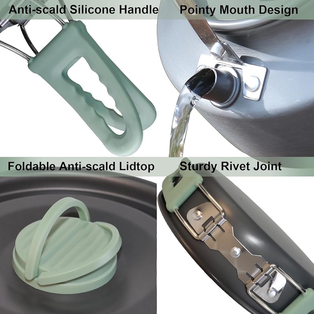 • 4. 【تسخين سريع ومعالجة آمنة 】 الوعاء والغلاية مصنوعان من درجة الغذاء وألومنيوم التوصيل السريع للتسخين وهو قادر على طهي الطعام أو غلي الماء بسرعة كبيرة. إنه يوفر وقتك ويمكن أن يكون مفيدًا جدًا للاستعداد لتناول وجبة سريعة أثناء رحلة التخييم أو المشي لمسافات طويلة. المقبض مصنوع من مادة مقاومة للحرارة وله تصميم مانع للانزلاق لضمان السلامة. الوعاء والملعقة مصنوعان من مواد صالحة للطعام، لذلك يمكنك استخدامها بأمان.