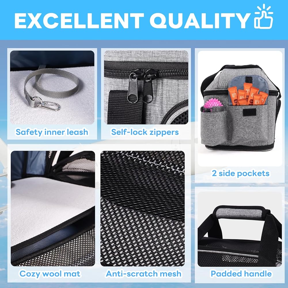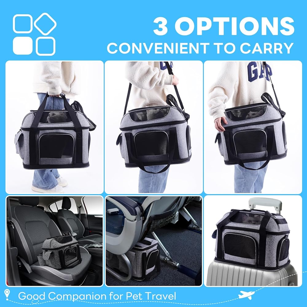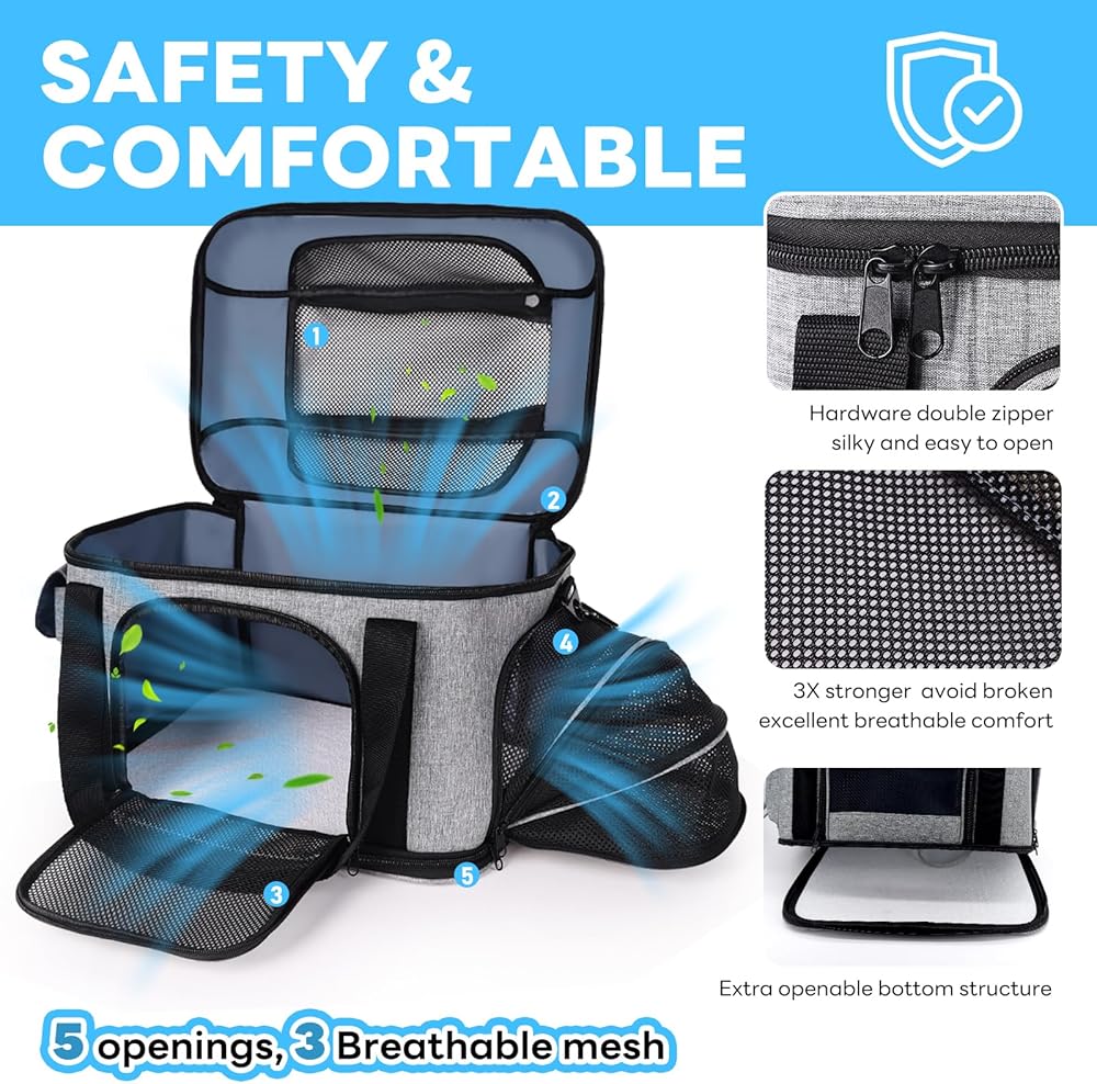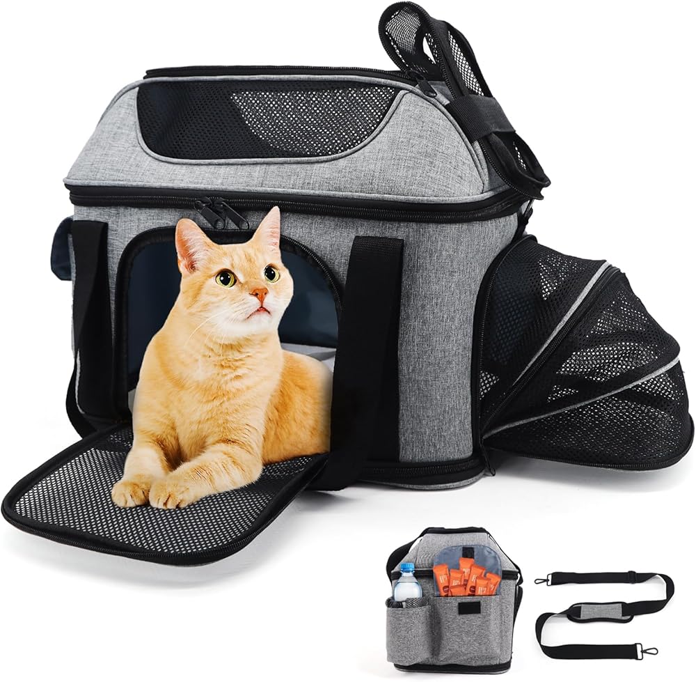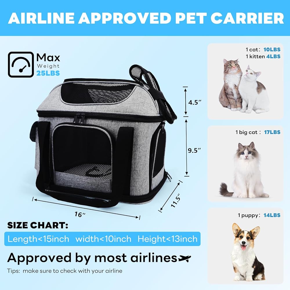 حاملة القطط Supet ناعمة مع إمكانية توسيع الجزء العلوي والجانبي، معتمدة من شركة الطيران الناقلة للكلاب للقطط. حاملات الكلاب الشبكية المضادة للخدش للكلاب الصغيرة والقطط الكبيرة، أقصى وزن 25 رطلاً.