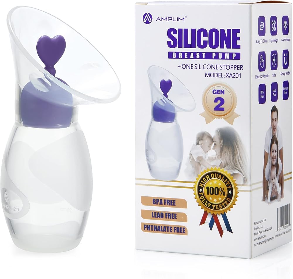 مضخة الثدي اليدوية/جامع Amplim Gen 2 للرضاعة الطبيعية مع سدادة (2 حزمة 4 أوقية/100 مل) من الدرجة الغذائية BPA PVC و Phthalate Free (4oz-Purple ، 1 ، Count)