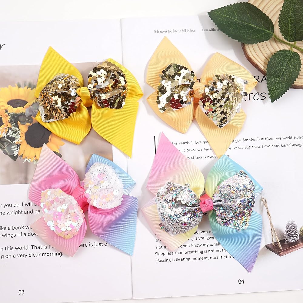ربطات شعر الفتيات هذه مصنوعة من شريط الحرير المضلع الفاخر مع ترتر ذو وجهين ومشابك معدنية من جلد التمساح، ليست جميلة فحسب ولكنها مفيدة أيضًا، تزين تسريحات شعرك وتمسك شعرك بإحكام أيضًا.