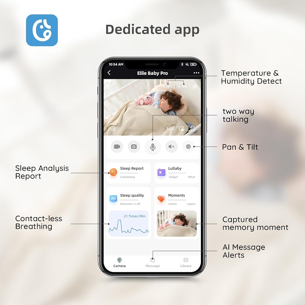 تهدئة فورية: قم بإراحة طفلك بسهولة باستخدام ميزة Cry Soothing الخاصة بنا. قم بتشغيل التهويدات أو انخرط في محادثة هادئة مع طفلك من خلال الصوت ثنائي الاتجاه، مما يوفر العزاء خلال أوقات الحاجة تلك.