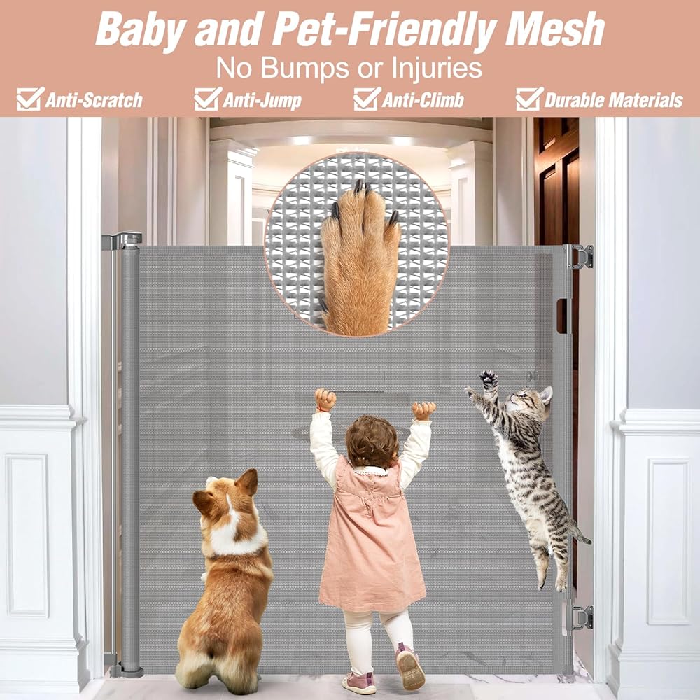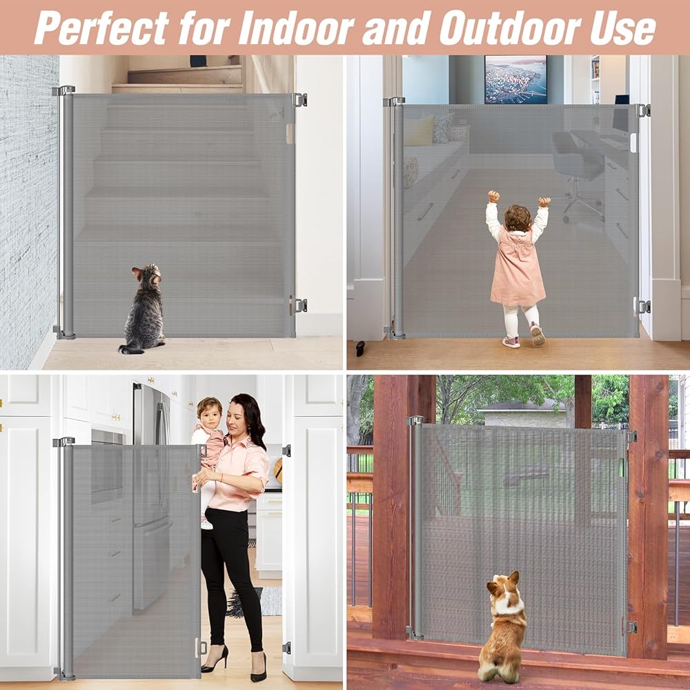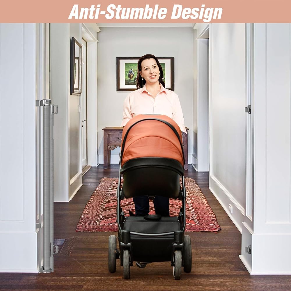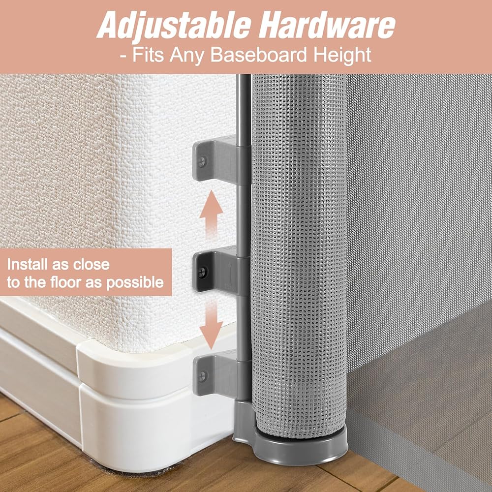 تصميم مضاد للتعثر: بوابتنا القابلة للسحب بطول 48 بوصة خالية من القضبان السفلية، مما يسمح بمرور سلس للأطفال والحيوانات الأليفة وحتى عربات الأطفال بعد سحبها، مما يقلل من خطر التعثر.
